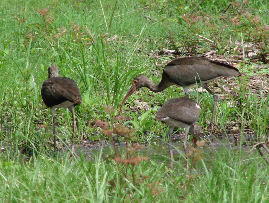 It's been raining so much lately that we have some new visitors to our pastures, wading birds.:eek: I believe that these are White Ibis but I am not positive.:confused: There were some solid white ones with them but they flew off before I got my camera. Oddly enough, they are not very timid and allowed me to get fairly close for a photo.