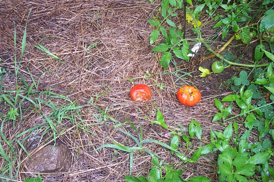 Would anyone have any ideas what is boring holes in my tomatoes ? This is a little garden at my Ct home.