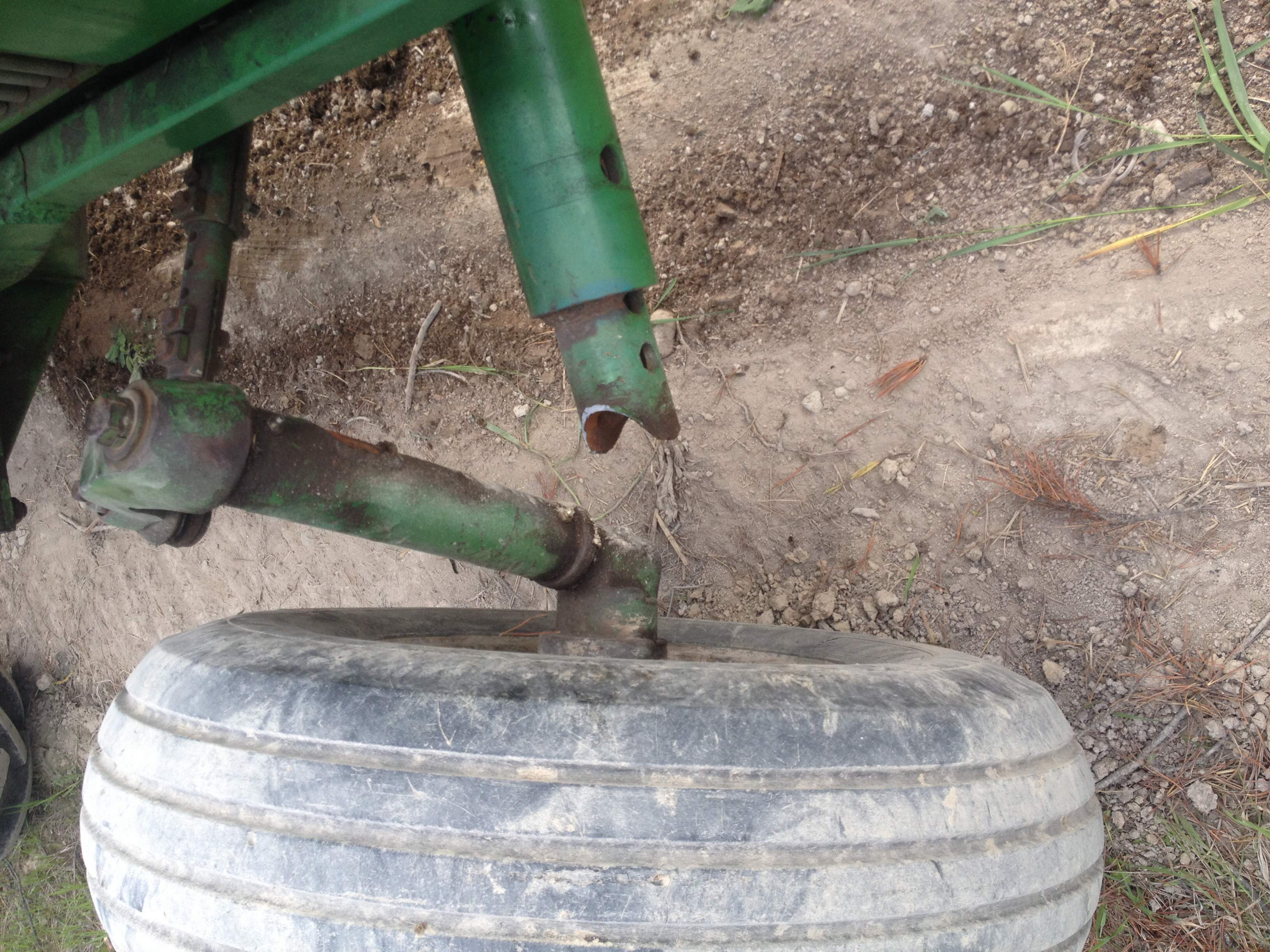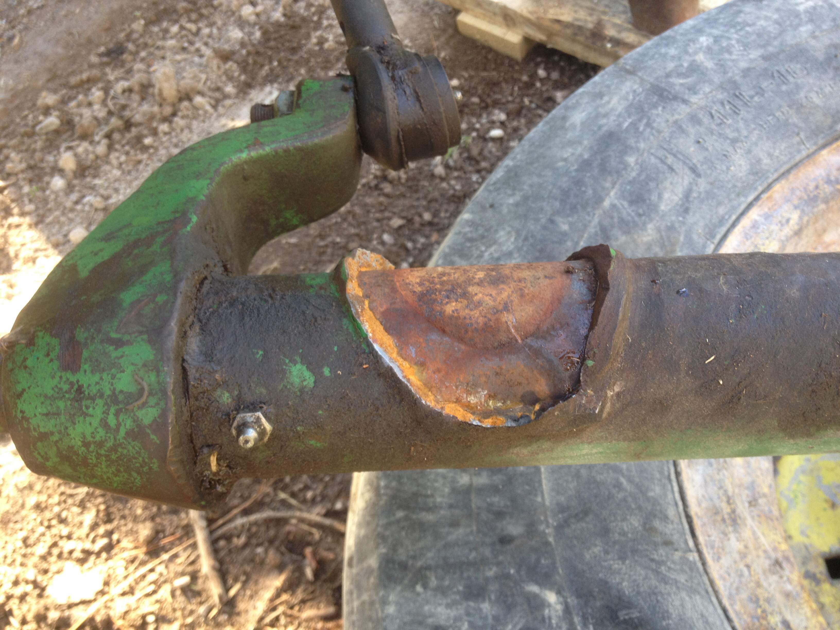 Took it all apart. Luckily it was bushings inside which made it quick and easy to clean out. With the help from a buddies company service truck we Welded the knee back together then threw spindle and tire back on. Now it's sitting as pretty as it can again!