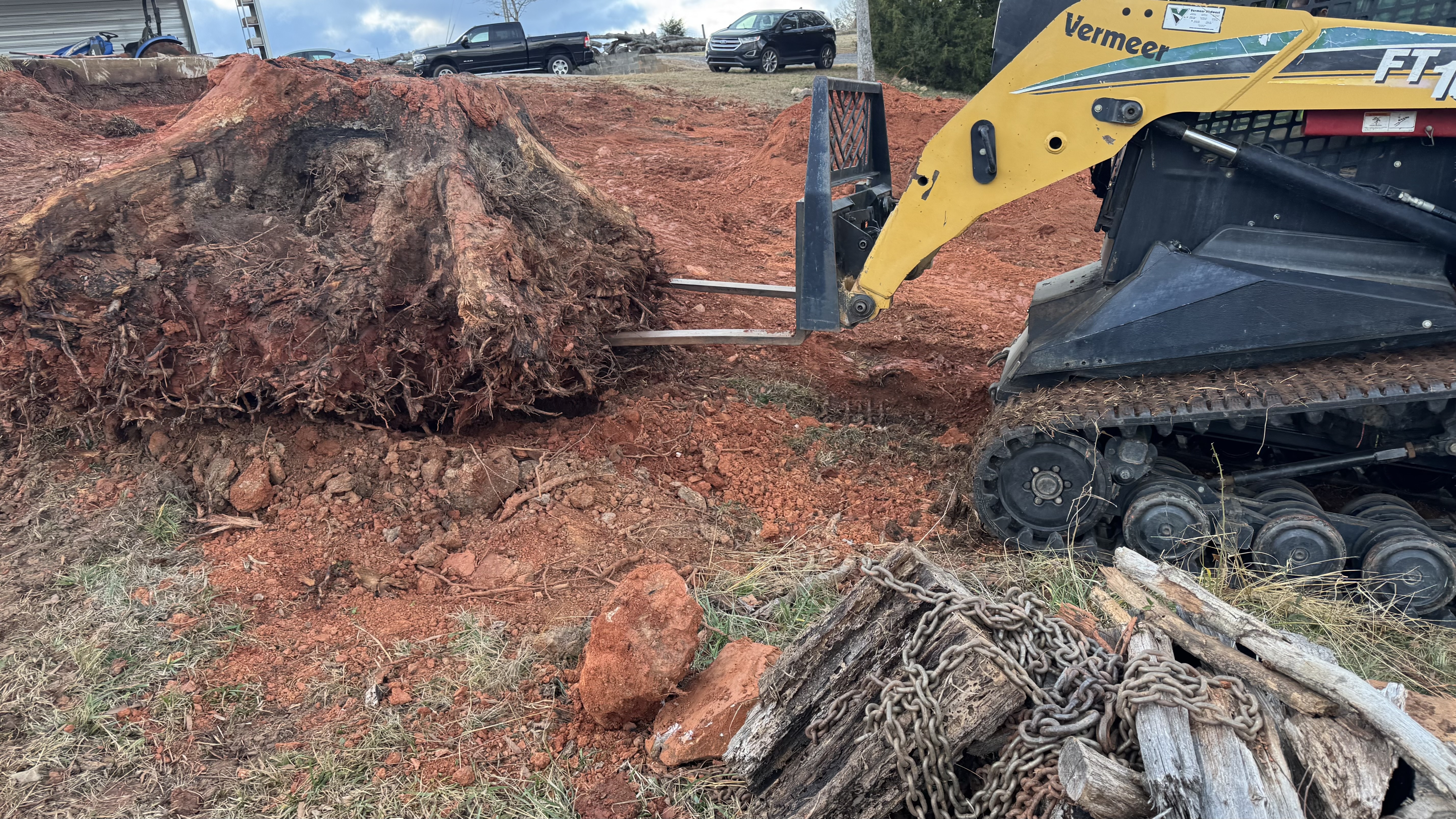 So cheap once I had them pulled over...And stumped with saw a bit...there was still so much dirt on stumps, I couldn't even budge them with the tractor....