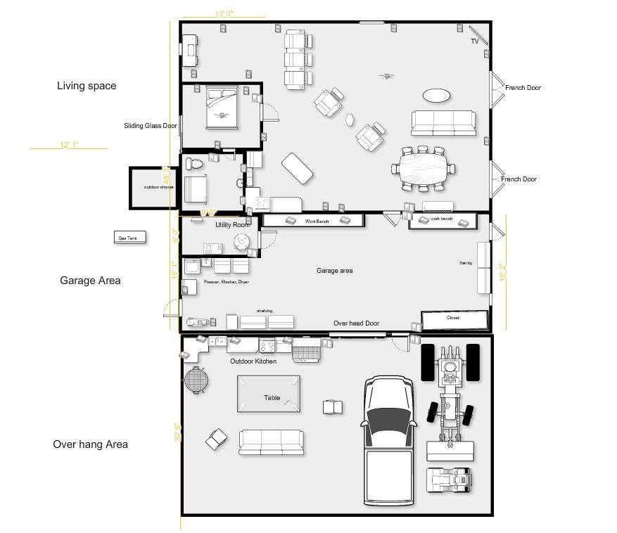 In the over hang will make a summer kitchen to cook and entertain outside. 20 wide will concrete by 48