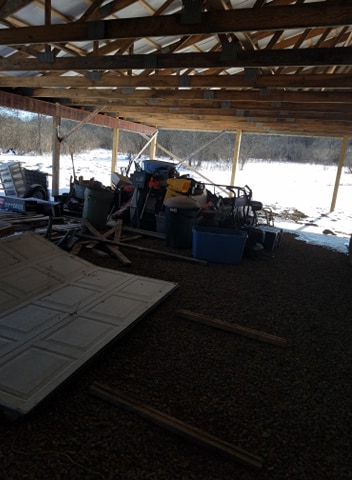 finally I remember my neighbor brother is a trucker and he moved the trusses for me. We moved about 4 or 5 ton of metal from the barn. This was one of my biggest worries