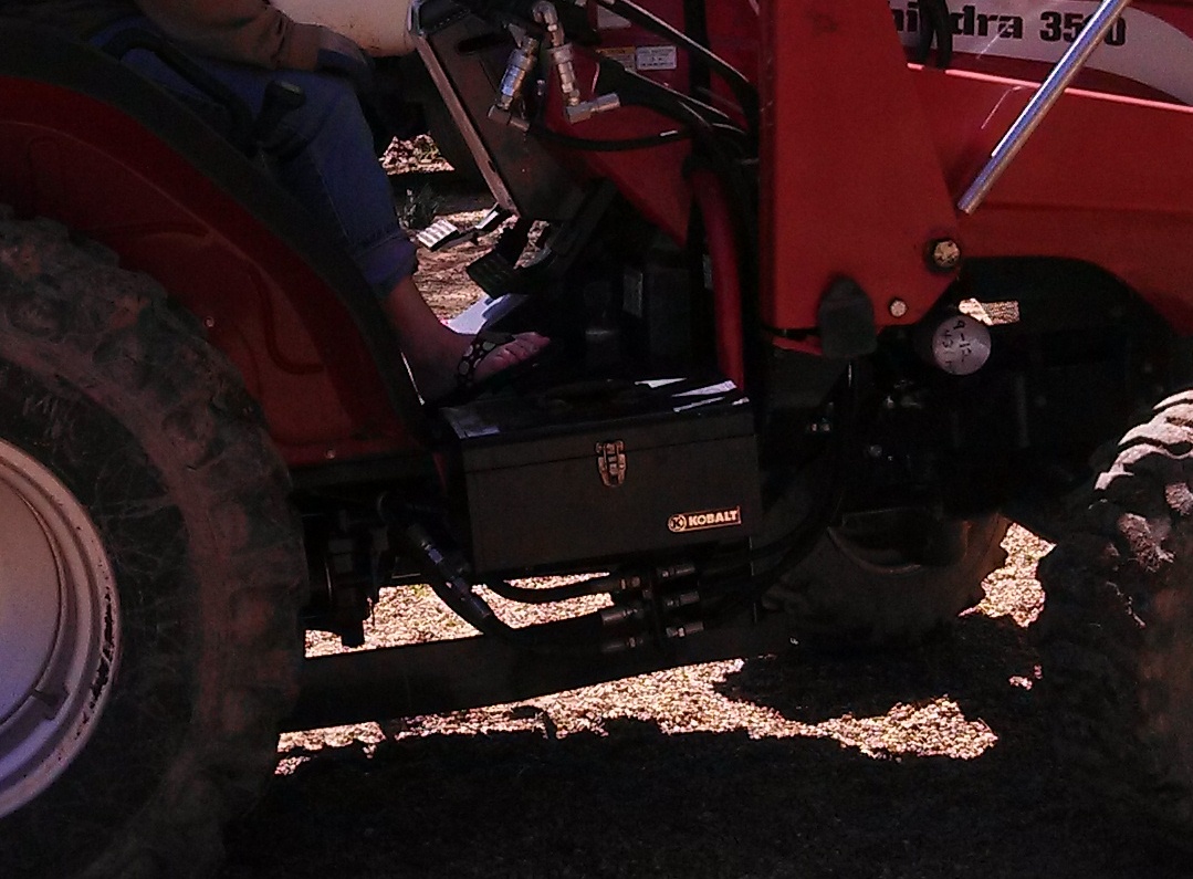 I mounted a small tool box to the floor frame on the right side where the FEL control valve is located. can't mount on that side anyway.