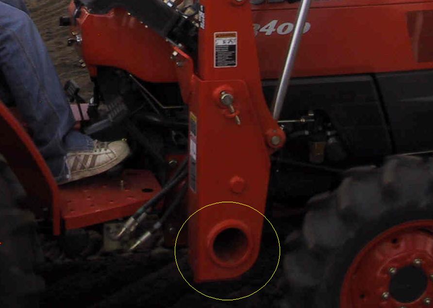 I have been searching in vain for a place to carry tools on my L3400HST w/ LA463 FEL. This weekend, I found the answer. The tubes that are part of the FEL mounts are 4 inches inside diameter and about 16" long. I found at the local Home Depot, a couple of "Test Plugs" in the plumbing section. These are rubber expansion plugs made for 4" pipe. I found two types. One that is made of two galvenized metal plates with the rubber plug in between, at the other is made of plastic. A wing nut compresses the end plates and expands the rubber donut so that it seals a 4" pipe. The metal type is thin enough to fit in the narrow space between the FEL mount and the tractor. I had to disassemble the plug and put together in place, with the wing nut reversed so it is inside the tube. If you have muscular arms, you may need to get someone with skinny arms to help you out with this. Sadly, I needed no help. The larger plastic plugs have a nice large wing nut that is easy to snug down or remove. I used the plastic type on the outside. A little grease on the faces of the expansion plugs makes them much easier to install. Put the grease on the face of the plug that gets squeezed between the two end plates, not on the outer diameter.