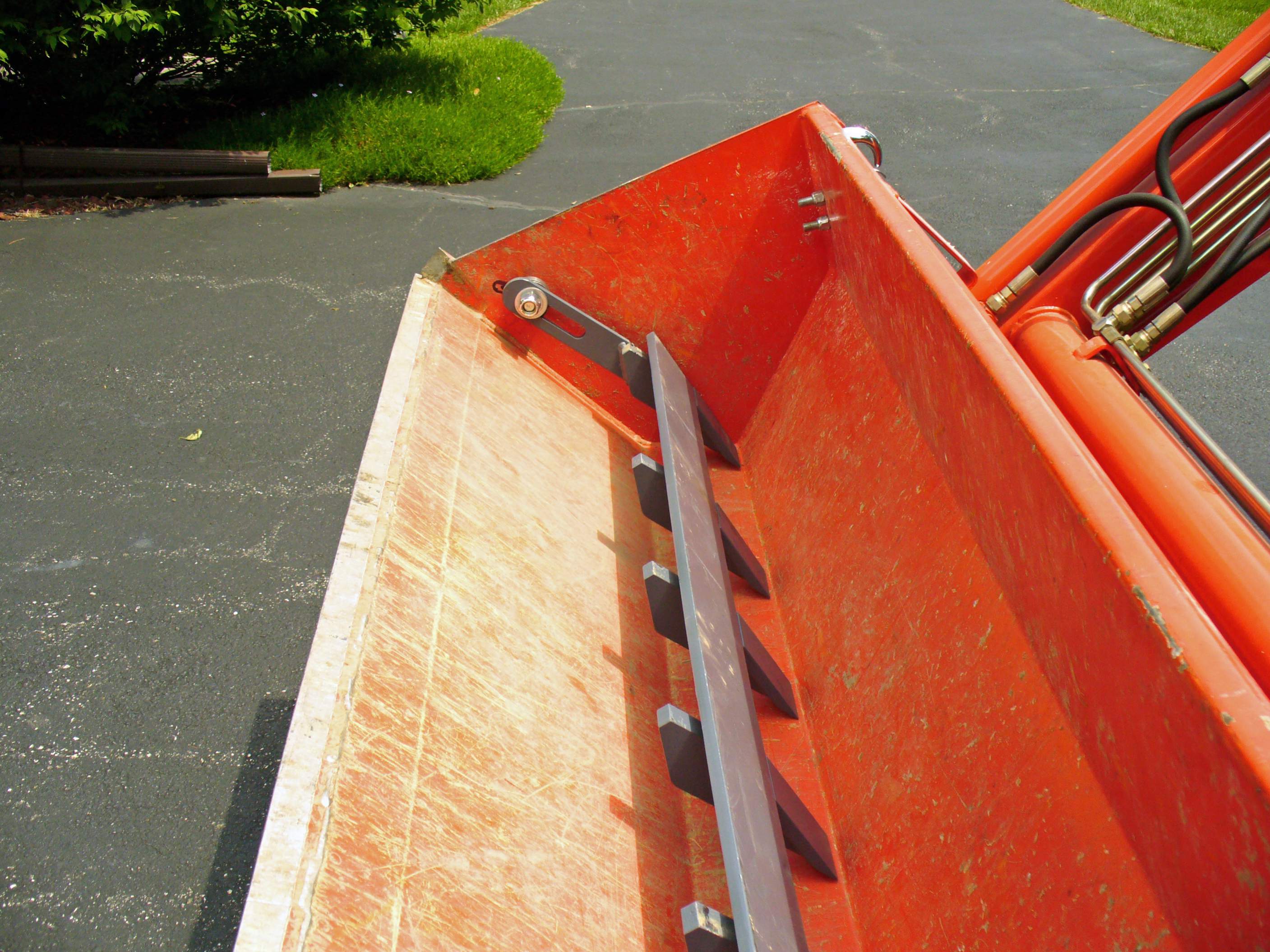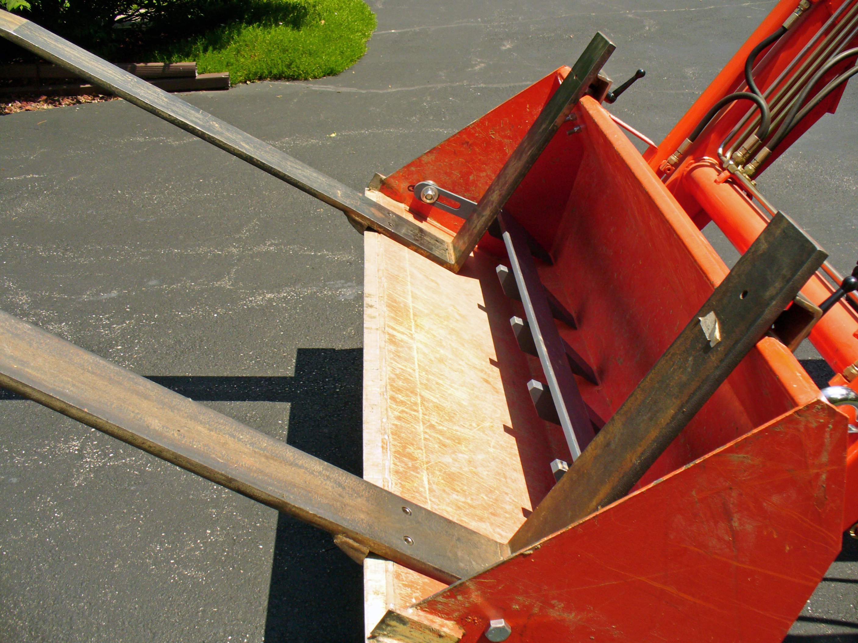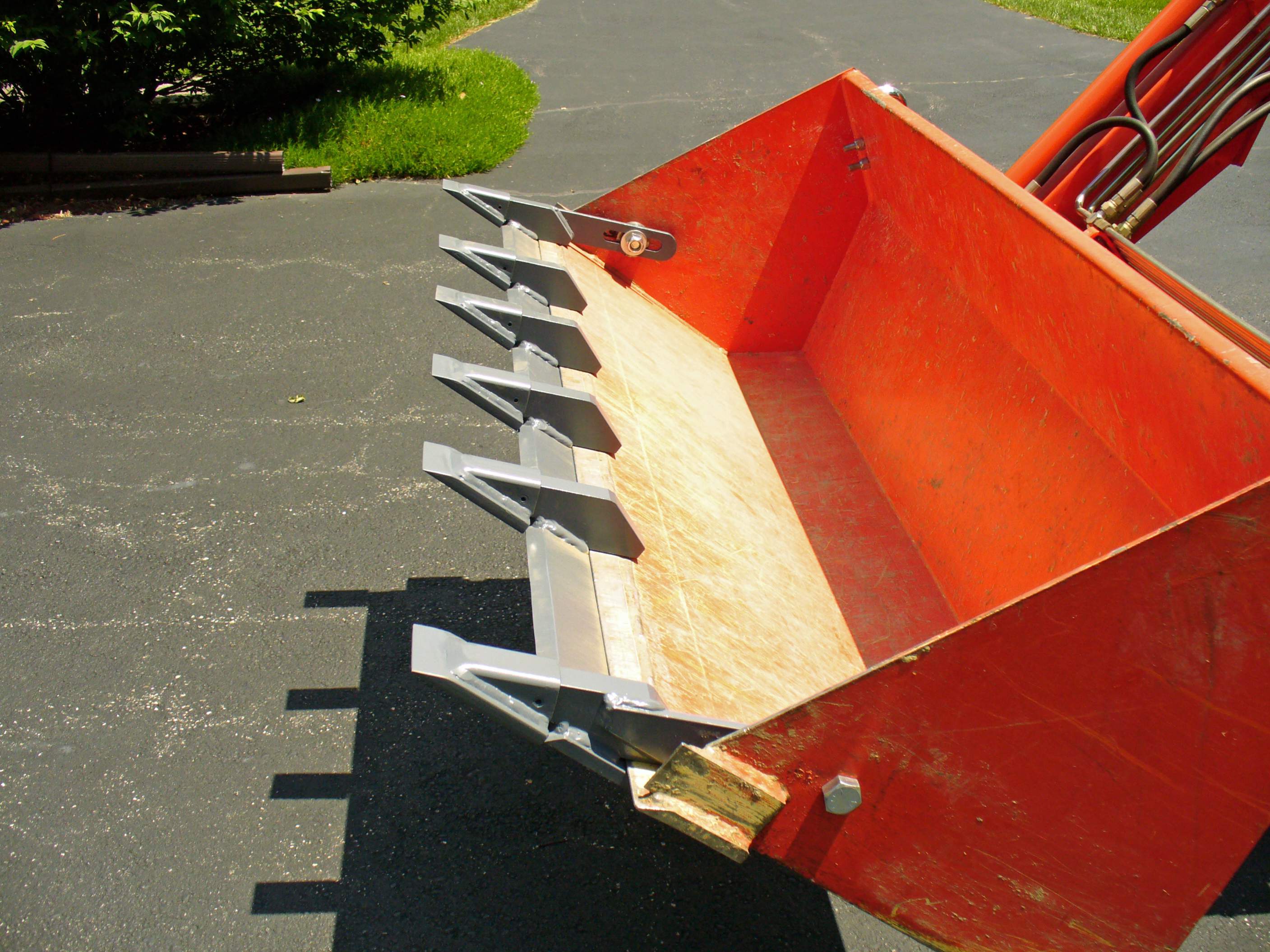 I have been with this forum for 4 years and log in everyday. I have not posted many times, but would like to share a toothbar & bucket forks that I recently made with the help of a machinest friend of mine. The toothbar will flip back into the bucket and allow me to attach the forks. Also the toothbar is almost flush with the bucket bottom to allow for smooth back dragging. The forks attach with spring loaded ratchets with the bolt attached and allen screws on the bucket floor. They are heavy duty.
