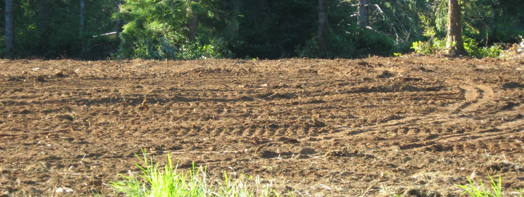 After the dozer left, I ran my box blade with the scarifiers down to loosen the soil and uproot up the small roots and stumps the dozer missed. I used my landscape rake to rake up the debris, then came back with the BB to smooth out the surface.