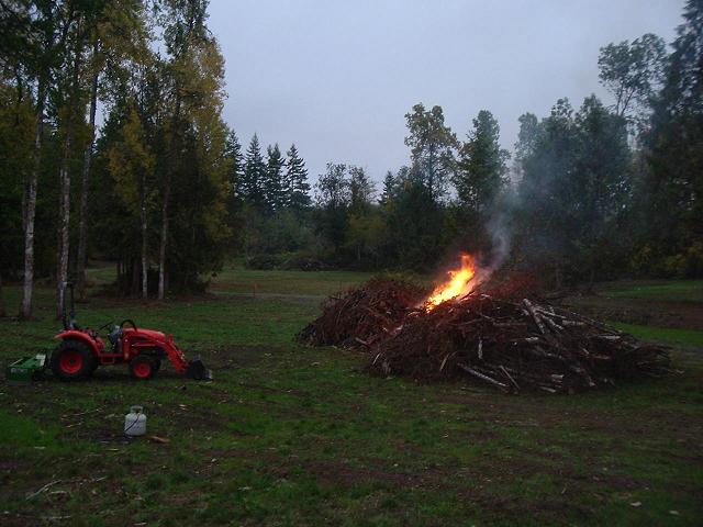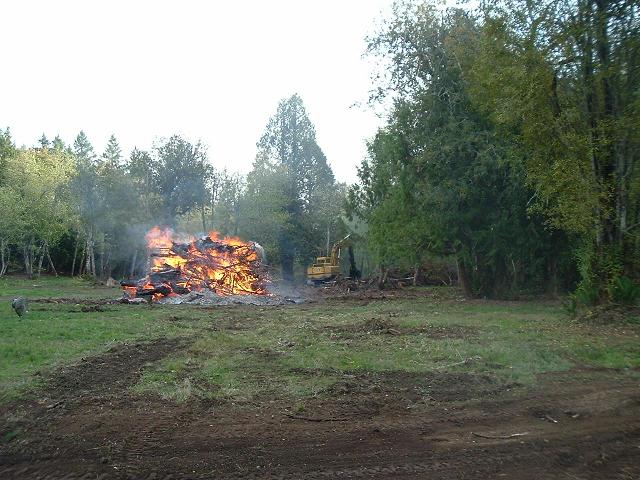 Highbeam is right. Those flames are not easy to control and new fire can start anywhere sometimes 40 or 50 feet away. I hired pros to burn my piles last Winter and it took three days and nights. There were still huge leftover stumps. Here is a pic.....