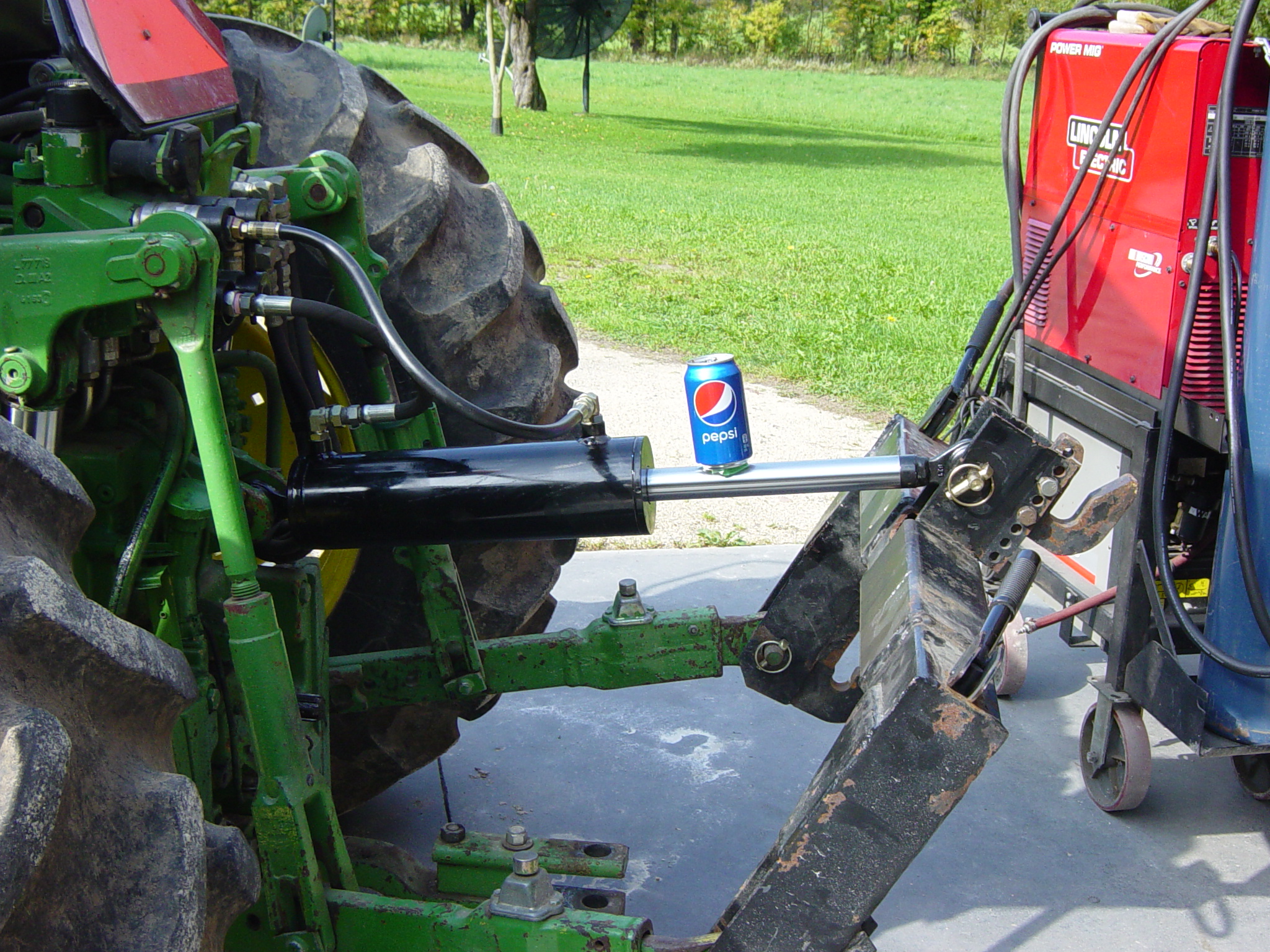 This is the rake that I am having trouble with. I used an old 2-1/2" top link cylinder that I had built almost twenty years ago for my little JD 770. It would not stay put, either extending or retracting on it's own. I figured the cylinder was not up to the task and FINALLY got a new 4" custom made link from the guys that make cylinders for Wallenstein.
