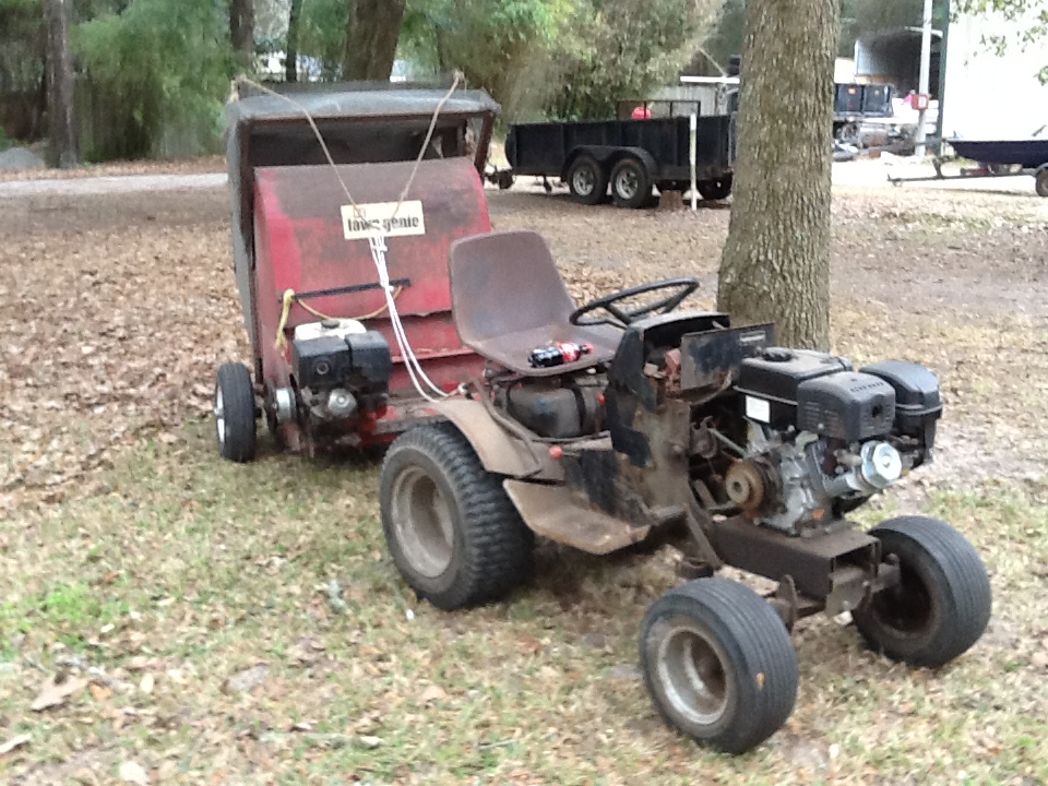 My Husqvarna GT48DXLS was pushing through about 1 foot of leaves, making it 2 feet in front of the mower. I had to stop once because the accumulated leaves were starting to get into the engine and catch fire. They were that deep. Did I neglect the lawn? Nope-- did it last week as well. Lawn isn't growing, but the leaves are sure falling. My normal process is to take a "half bite" to the right side of the blades, moving very slowly, and even then I need to back up once in a while.