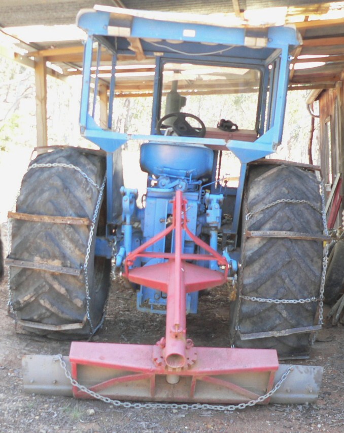 After partly hijacking another thread some time ago, it seemed best to start another one dealing with how to get better traction on my Ford 6000 in the bush and on rough dirt roads. The tyres are well worn - maybe 20% tread left and although forward traction was sortof OK, reverse was a constant problem because the wheels just slipped causing some interesting situations, to put it mildly. Because the tractor is used almost exclusively for scraping the bush roads and tidying up areas of scrub, the cost of $3 grand for new tyres could not be justified.