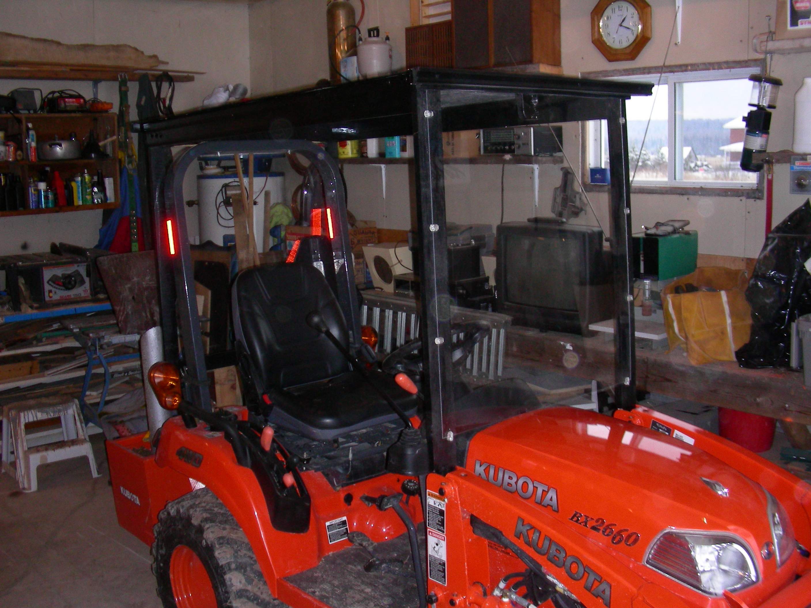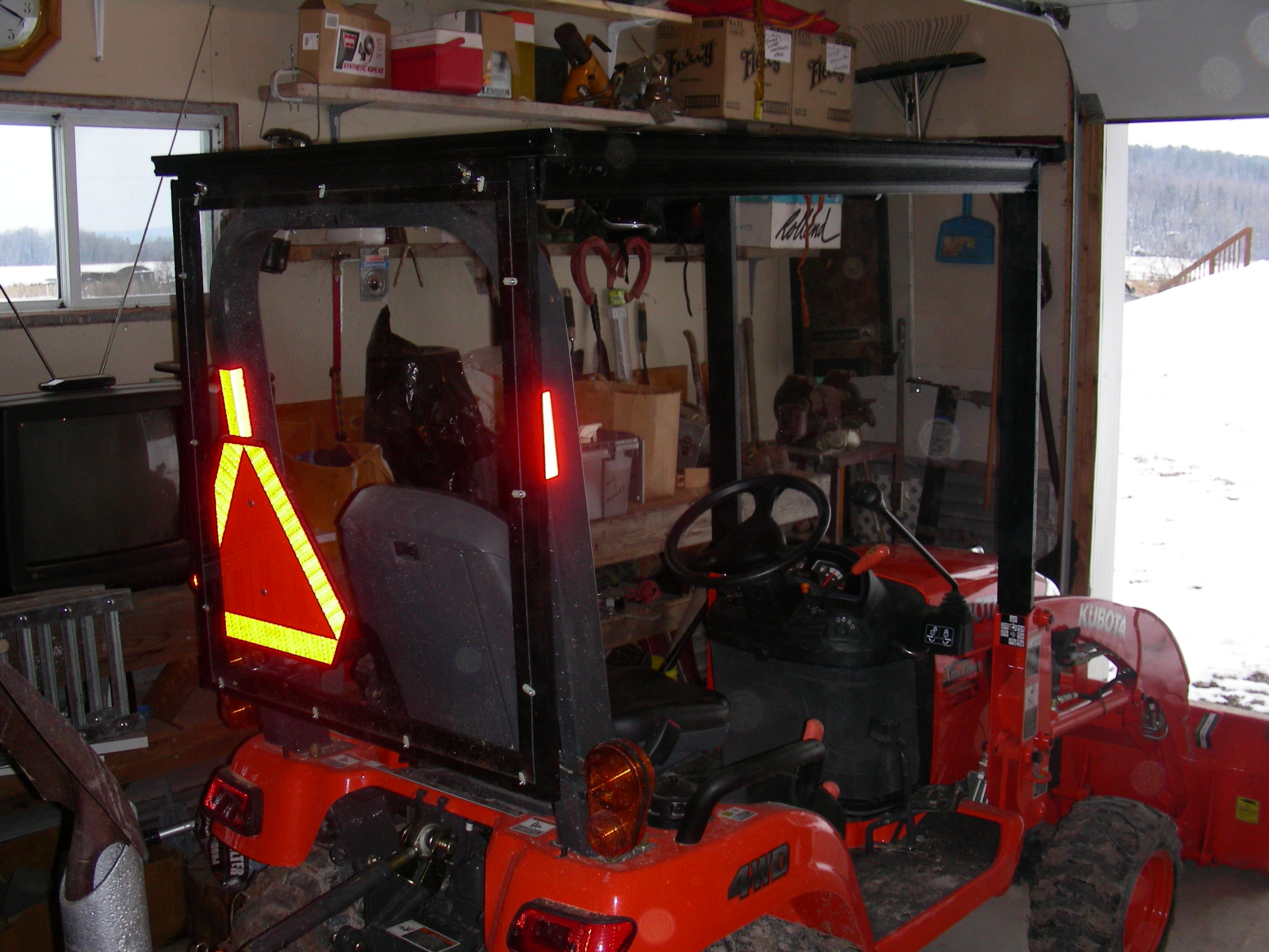 I used hardwood , painted black , then mounted 30 x 32 inch plexi glass front and back . Only required two quarter inch holes in ROPS and two in the vertical brace for FEL.