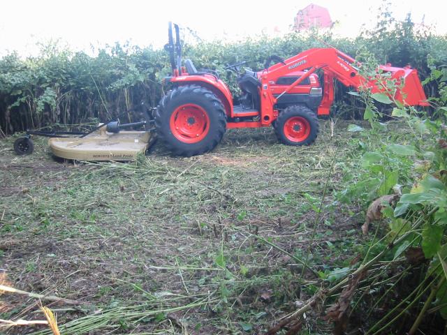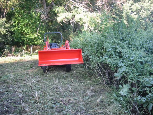 Putting the new tool to work. It cuts through these weeds fairly easily; unlike the poor little 25D which I had to stop every 3 feet to let the engine rpm come back up to speed.