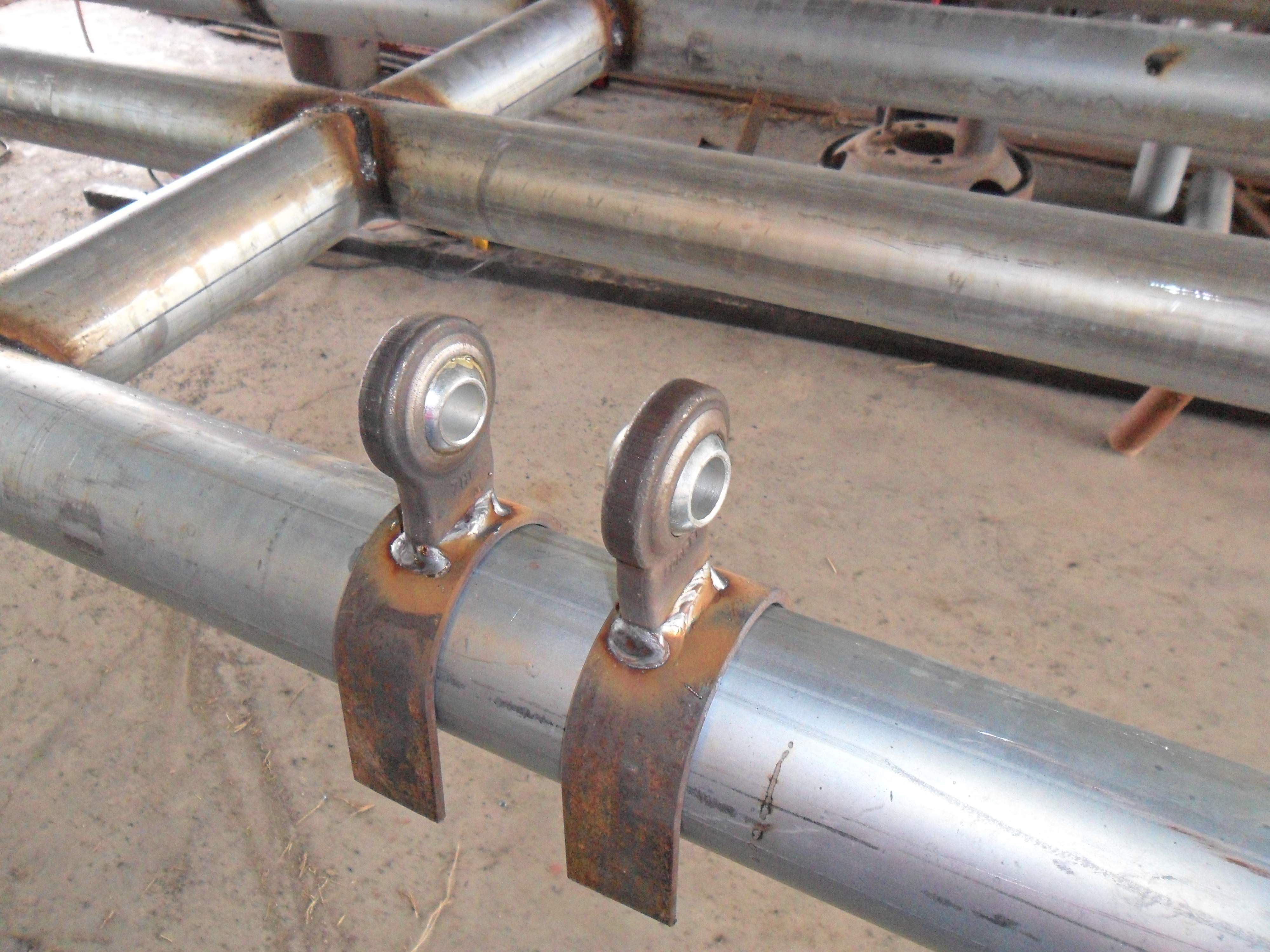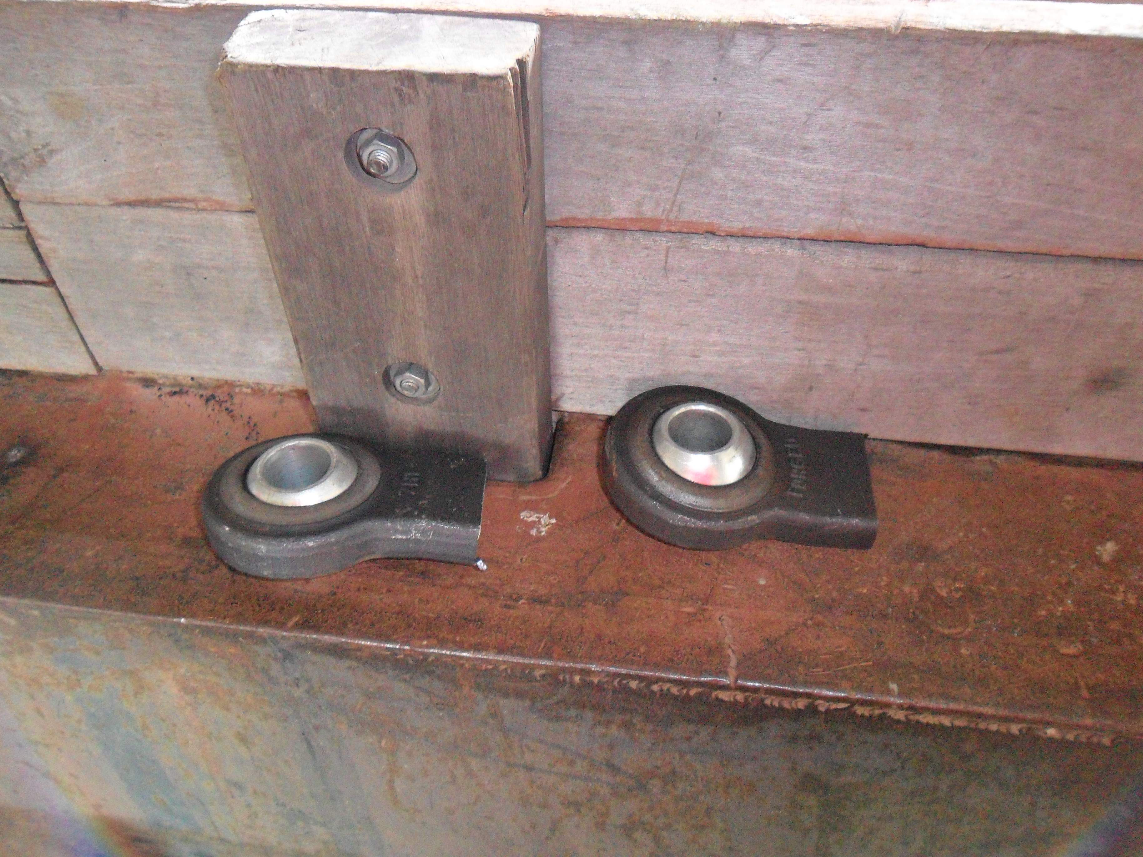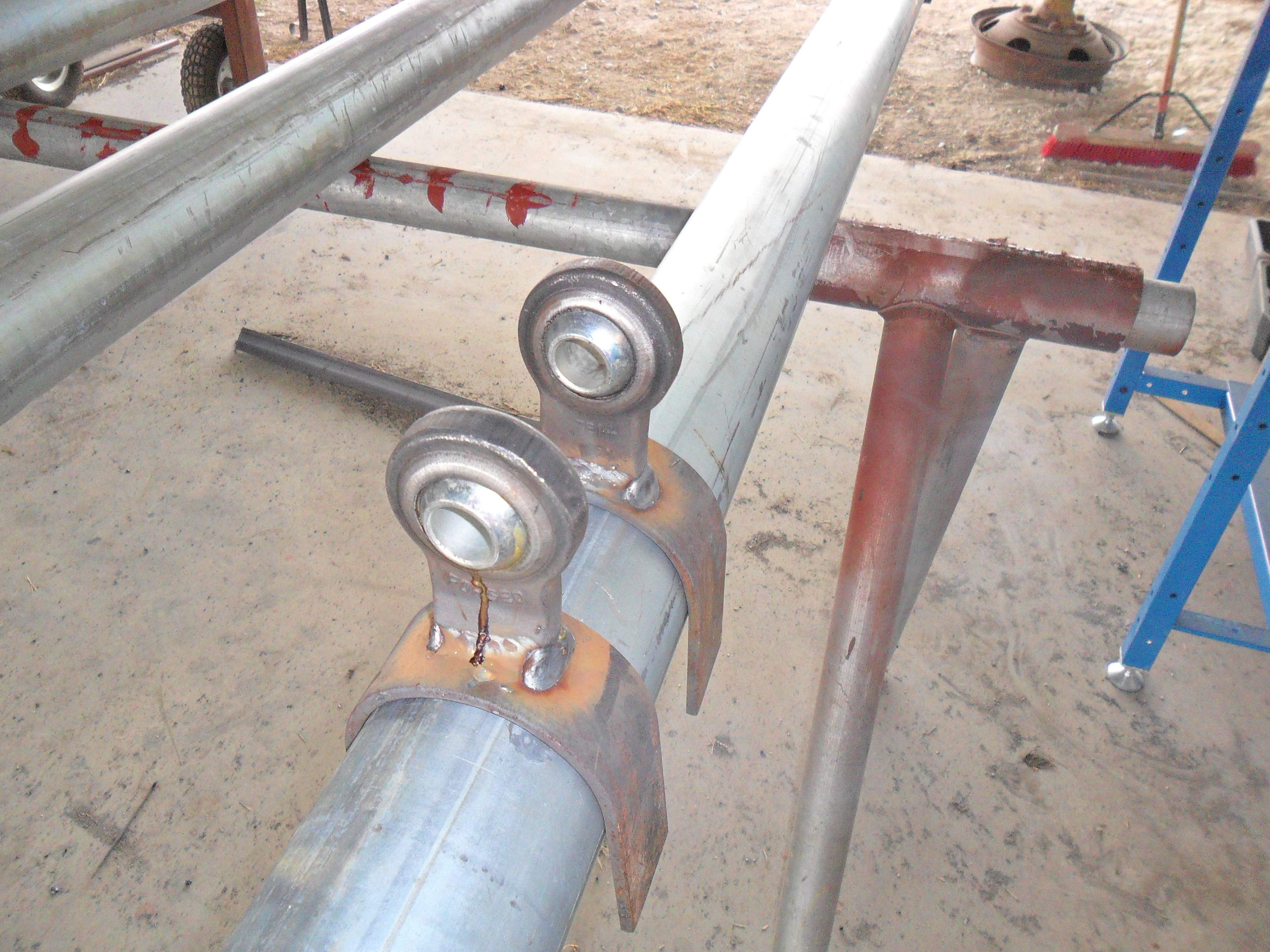 Besides the beauty of the heim or rod end bearing there is the ease of installation with this system. One of the problems with light weight material like the fourteen gauge used in the gate frame is it offers little strength for a welded on hinge. The 1/4 by two inch bar stock takes care of that.