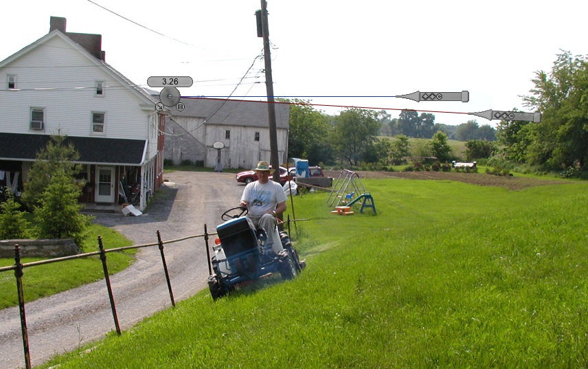 When I mowed for my Mom-in-law there was a hill that I really shouldn't have mowed across. As long as the grass was dry it was possible in 4WD. I usually used the old Ford on the hill because I could keep one cheek on the uphill fender and the other on the seat. The RFM doesn't allow any twisting between it and the tractor, so it was pretty stable so far as rollover from the slope itself. Even in good conditions the tractor tended to "crab" along the hill. My one fear was that I'd slide sideways. There was a concrete retaining wall atthe base of the hill that was flush with the ground I was mowing. The ground on the lower side of the wall was about 18" lower and the rusty pipe fence at the bottom would have served no purpose other than to be something to hurt on the way through it. A few times when the grass was damp it did start to slide. I steered sharply uphill and floored it and the tractor got itself pointed uphill.