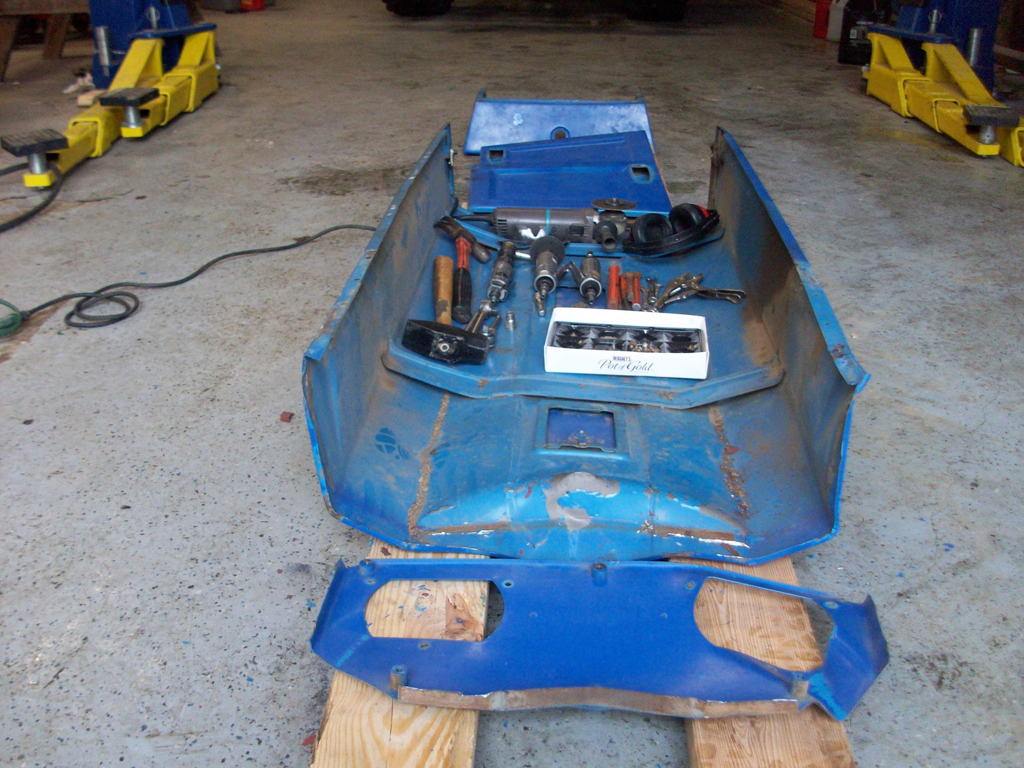 I see I'm not alone, sometimes its just a momentary thing, like looking for a dripping hydraulic line instead of watching the loaders movement-and of course after crushing the hood there wasn't a drop of oil from the reconnected line.!!! Thanks for the body work suggestions , I've already painted a few cars, but this chinese tractors sheet metal is like .060 thick, its much harder to work than most cars sheet metal, sooo something special is in order and since the tractor was involved in the first place why not make it do part of the work Rhino-body work 003.jpg hey that worked pretty good, That gives me another idea..Rhino-body work 004.JPG