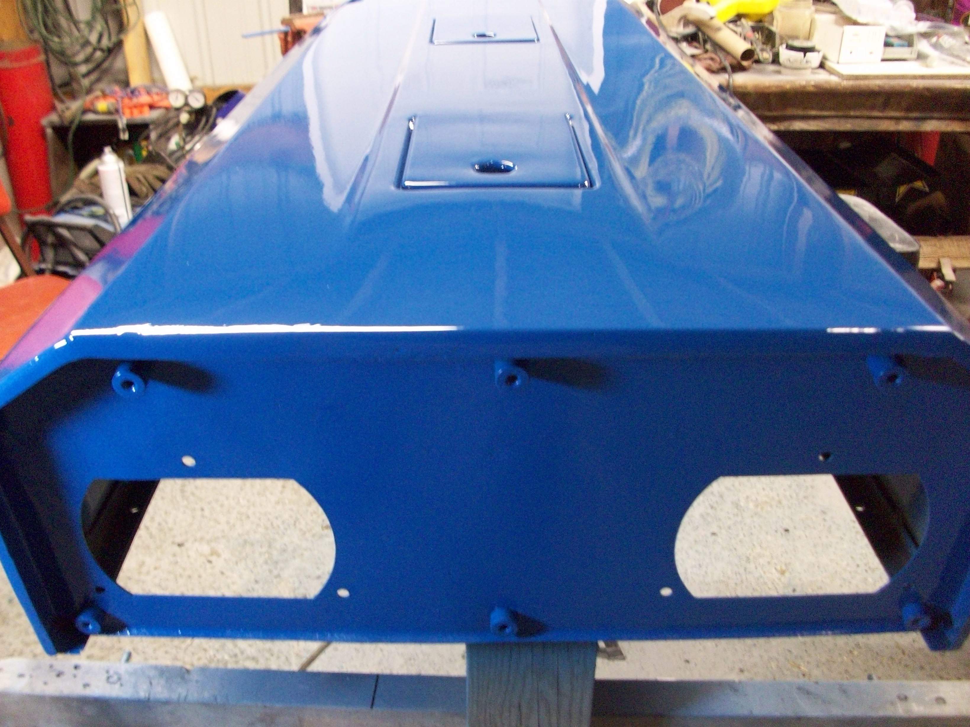 Thanks everyone, No there's no hardener in the paint, it's just car quest tractor Alkyd enamel thinned with about 1 oz. of naptha, and today it's still shiny but it's not fully cured, 45 degrees in the garage this morning so I'll give it another day. I'm concerned about the ultimate hardness and abrasion resistance, the guys said a lot of painters use the equipment paint and then shoot it with a catalyzed urethane clear, which I have used before and still have enough to shoot it with, also thought I might pull the masking off the decals and seal them in at the same time..
