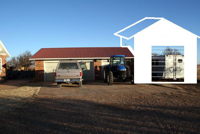 I don't know how much space you have where the trailer is, or behind it, but I'd add on where you have the livestock trailer parked.