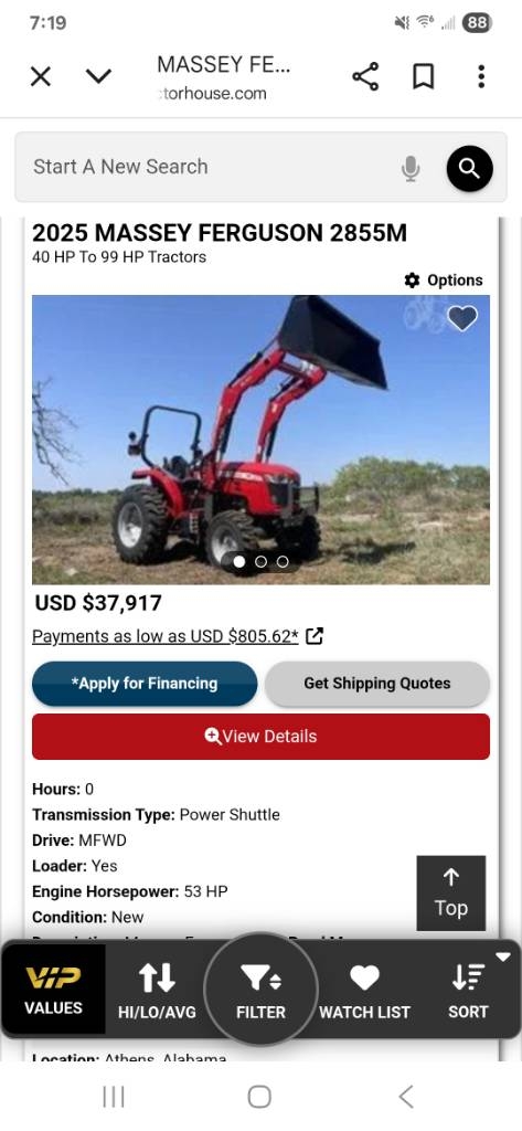 How far are you willing to travel, there is a MF 2855M, new, $37,917 in Athens Alabama, Power shuttle, open station, 4wd, loader. I dont know if this specific tractor comes with rear remotes, or how many, but it might be worth a call to Haney Equipment
