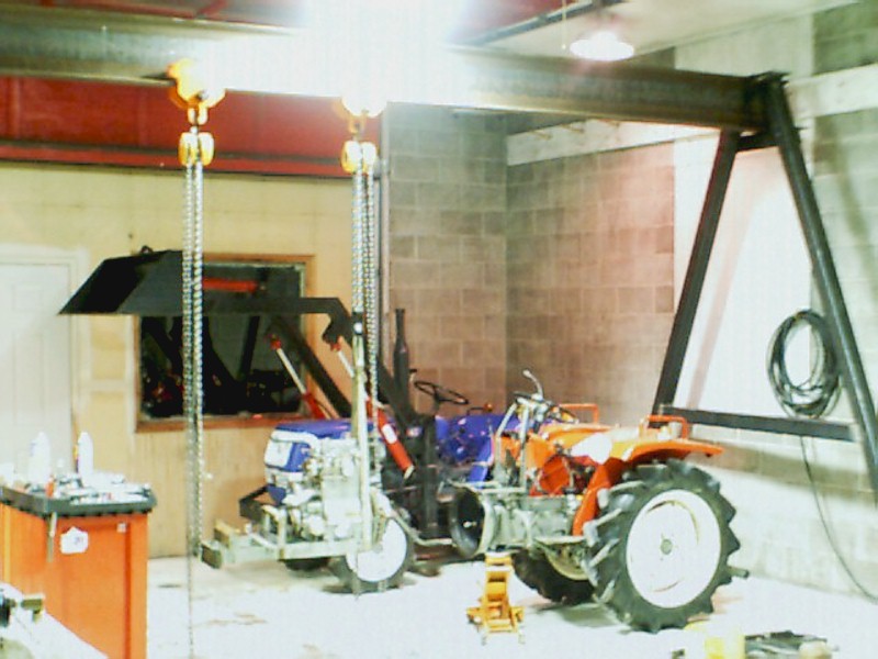 Dave, you are right, the weight is almost completely centered over the rear axel. The bell housing is just a huge empty tube all the way back to the gear box and you can easily support it with a floor jack. The front is a whole nother problem. When you disconnect it from the bell housing the engine wants to fall over to one side or the other. The axel pivots on the frame and there is nothing to keep it upright when it is unhooked. Before I unhook it I take two tie downs and attach the out on each end of the axel and the other end to the top of the engine. Then I cinch them down tight. When you disconnect the bell housing and pull it apart you now have a stable unit that you can just roll away. The rear is the easiest end to deal with because you can turn the rear tires easily by hand. When you put it back together and you get really close you can loosen one or the other of the tie downs to match the holes up evenly. This is just the way I do it and is by no means the only way but it works for me. Get everything out of your way and take your time and it is easier than most people think. Is the seal between the bell housing and the gearbox leaking? If it is give me a call and I have a good permanent fix for that. The good thing is that the 1500 and the 2000 are almost identical except for size. If you need any help feel free to call the shop anytime after 5:30 PST and I will help as much as I can. Have fun!
