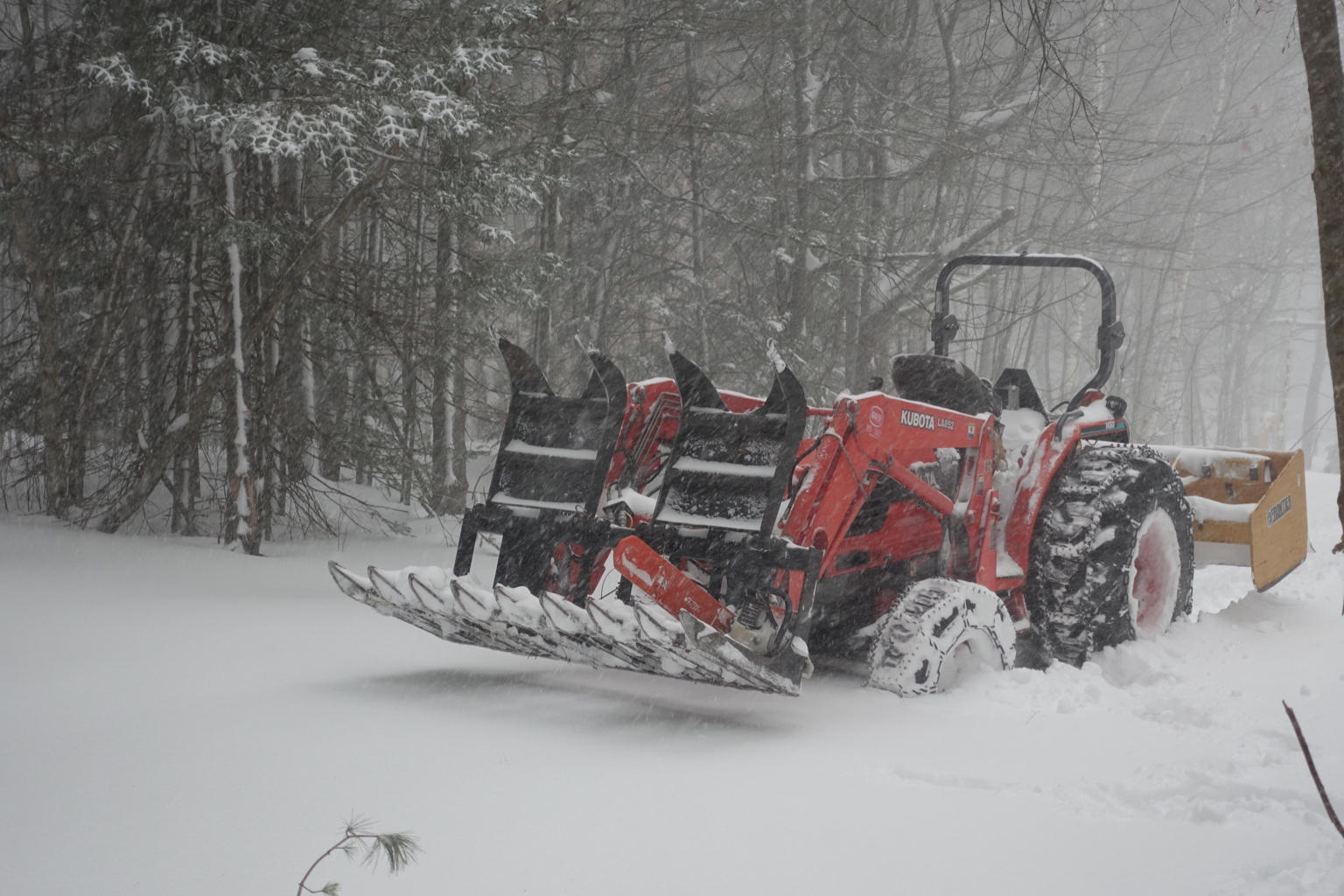 I eventually settled on Ofa Eko 8 chains (larger tractors would use the Ofa Eko 9). Top quality materials and construction, excellent forward and lateral traction, and a smooth run on hard surface. I guess I knew when I decided to get rid of the Ladder chains that something like this was what I really needed. I just mistakenly thought I could get by with something cheaper.