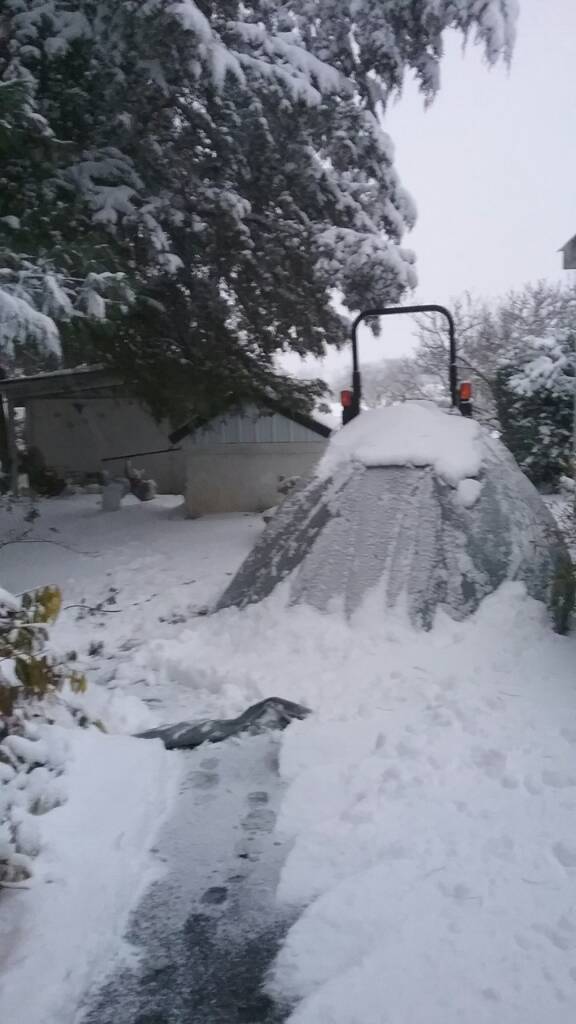 This should be "interesting" to plow. I think 16+" is a lot for a rear blade, but it is very light and fluffy, so maybe... If not the FEL will get a real workout.