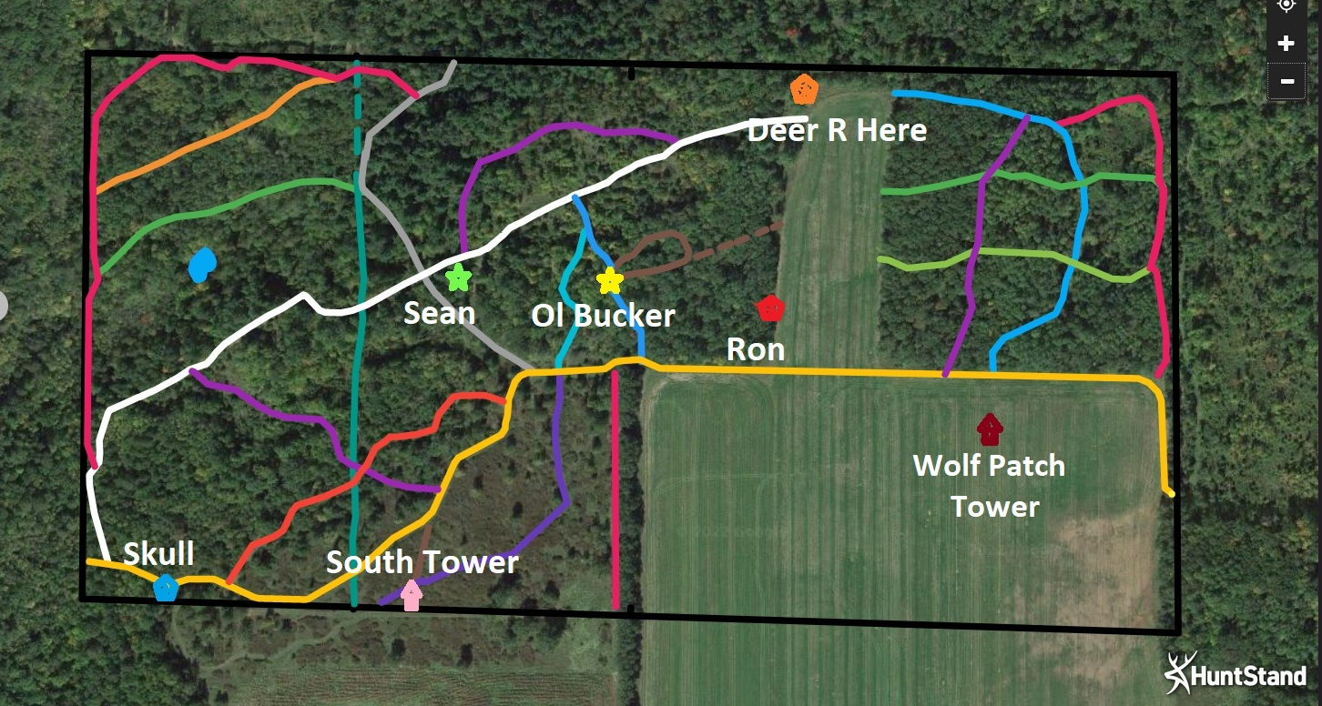 What do you use for GPS? I use either GiaiaGPs or Huntstand to map the trails and tune up stand locations in a Paint app. Here is our 80 acre hunting area.