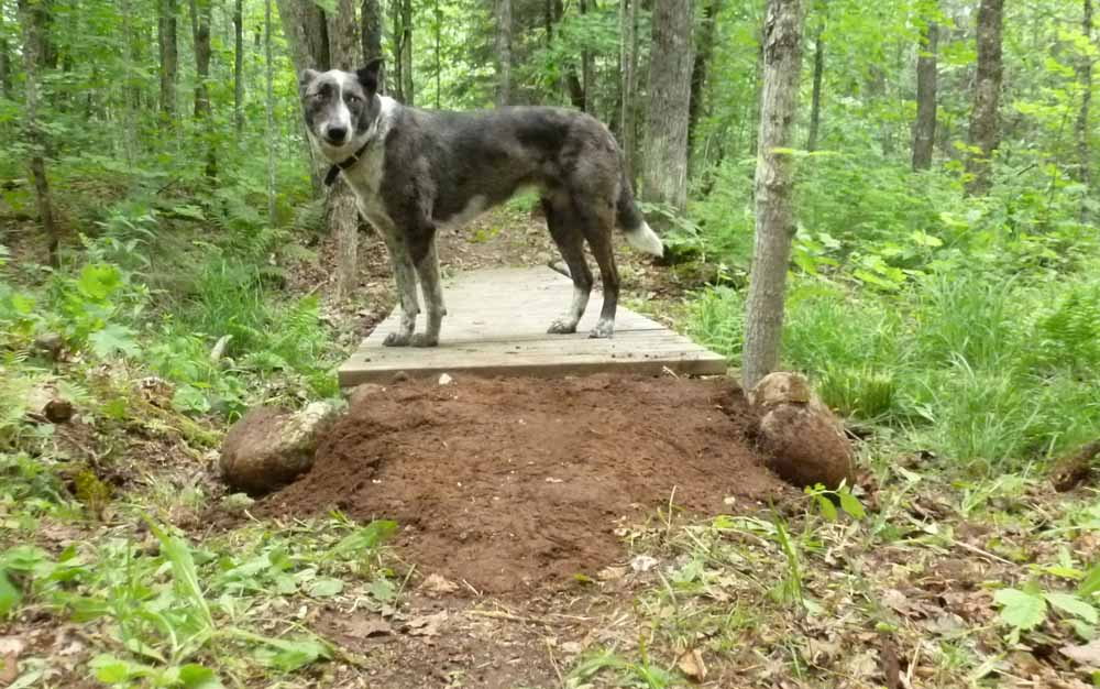 Me and the mutts were out on the trails today to refurbish dated map signs. This is what the roofs looked like.