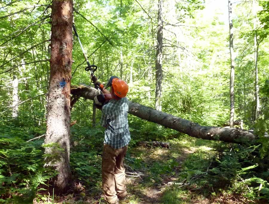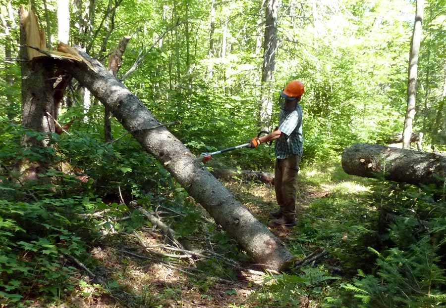 I'm working to clear a new property boundary through heavy woods on 6 to 20% slopes. I'm impressed that the surveyors got into some of these spots to drive a stake.