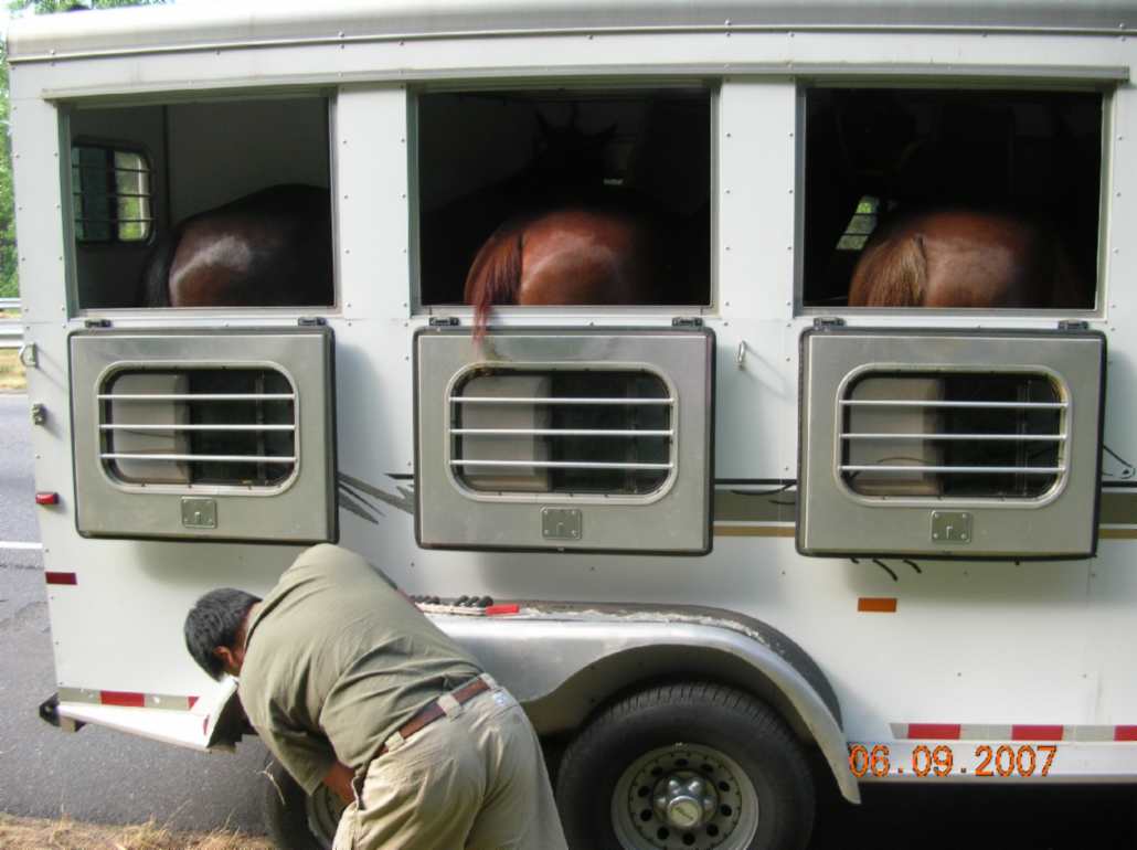 "... had a blowout getting on the interstate. was a tad difficult changing the tire on a trailer loaded with equine...