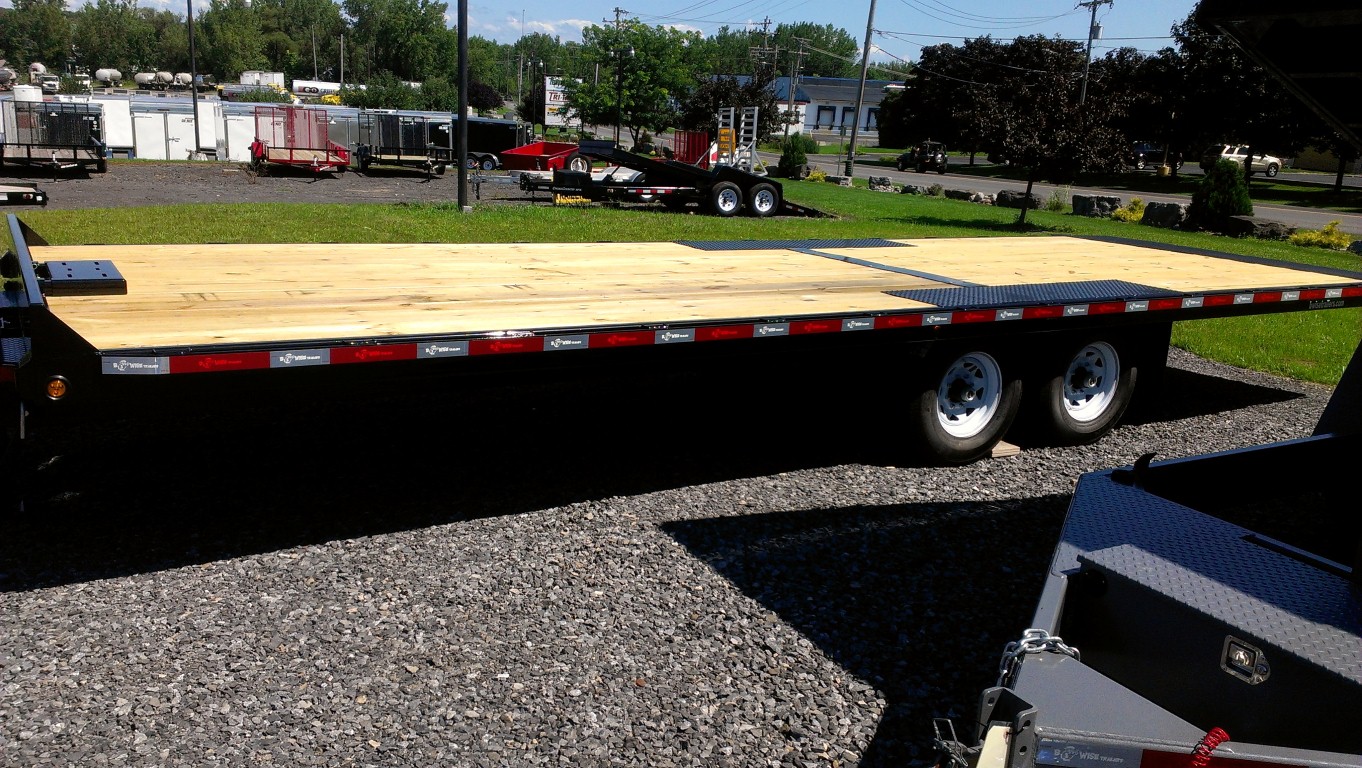 Just going by memory I think it is in the mid 4000 lb. range which would leave you with over 10000 lbs of equipment you could load. I upgraded to the Uniroyal tires and had a spare tire installed. As of now I am very satisfied with my purchase.