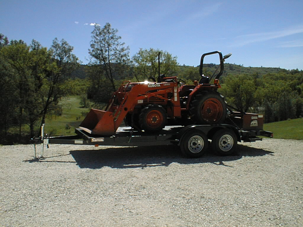I just purchased a 16' dual axle trailer with a 7000# gvwr and it hauls my L2500d nicely with any implement I happen to have on at the time. My tractor with the FEL weighs about 3100 lbs and then add 3-400 lbs for the implement plus the trailer weight of 1640# and your looking at about 5150 lbs total hauled behind a 2001 Ford F150 with a tow package. The truck does realize that there is something behind it when going up a hill but outside of that it tows really well.