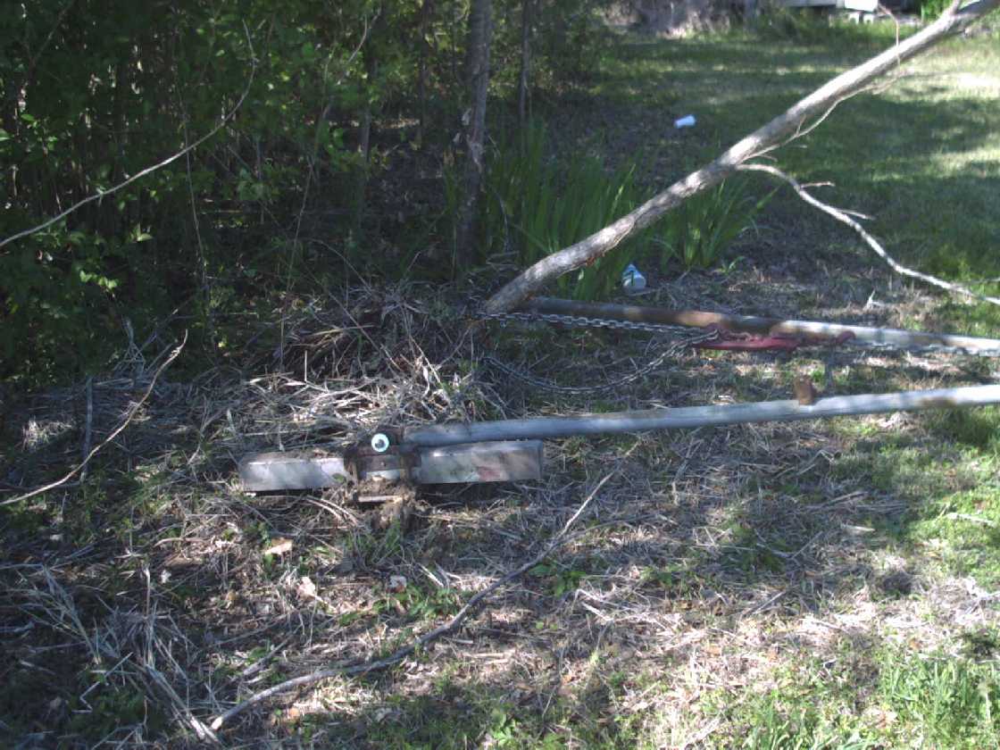 I'm glad I ran across this post! Simple mechanics at work, I will definatly put it to use sometime! .........I was thinking though, what if you had something similar to a long ripper tooth welded to the base of the pole/lever. It could be driven under the tree with a sledge hammer and would eliminate the need for a chain connecting the base of the tree to the top of the pole. My thought is to convert a two wheeled dolly (used for moving appliances etc.) into one. Of course it would need Extra bracing, a stronger axle and wider tires etc... Any thoughts?