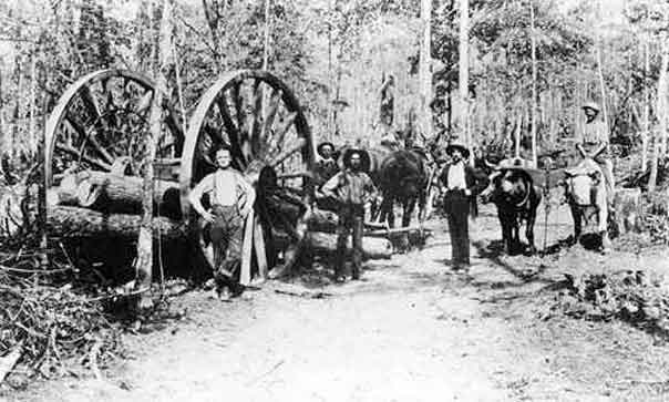 However, I believe those big logging wheels were more for skidding logs than pulling out small trees (although that is an interesting thought).