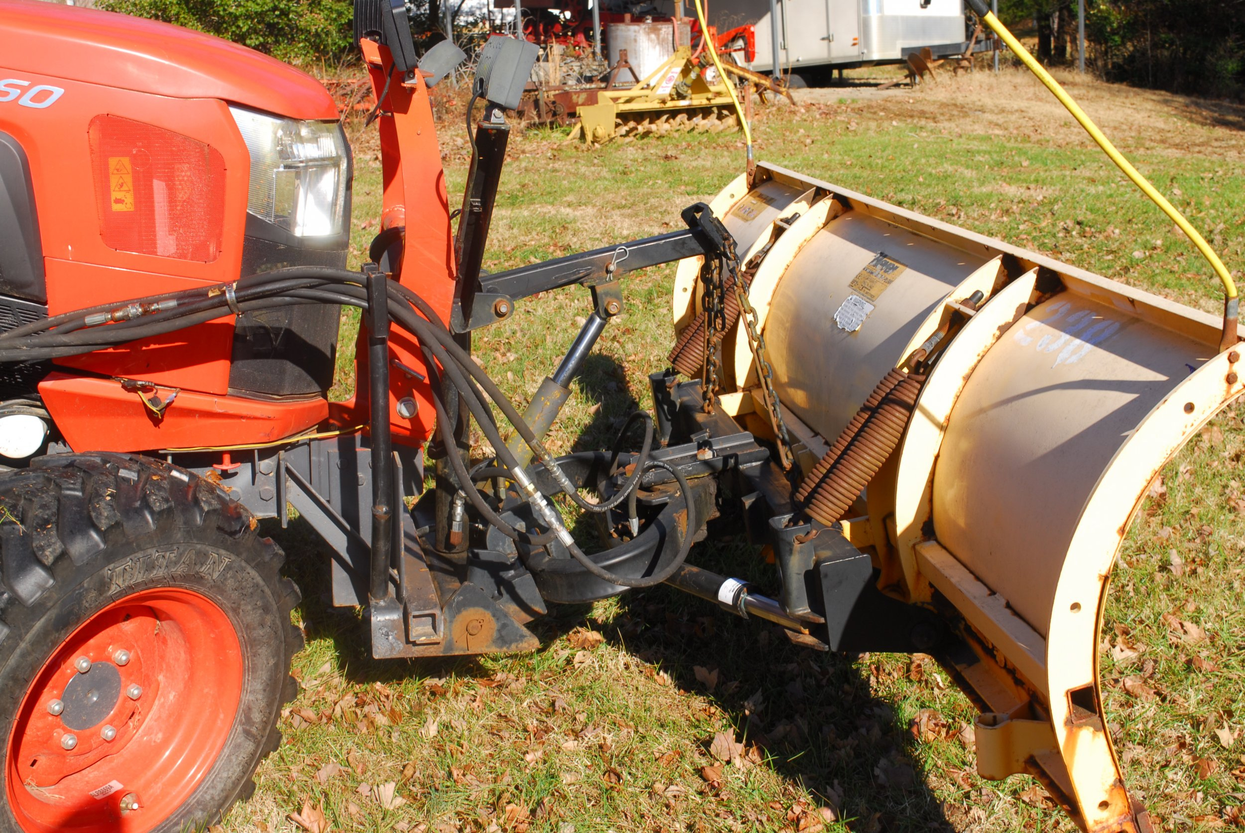 Here is my current set up; L4060 HSTC with a Meyers 8.5 foot commercial plow that came from a Maryland State Highway Dept. auction. I bought the plow from an individual for $400.00 (score!) with the electric power unit and no mount.