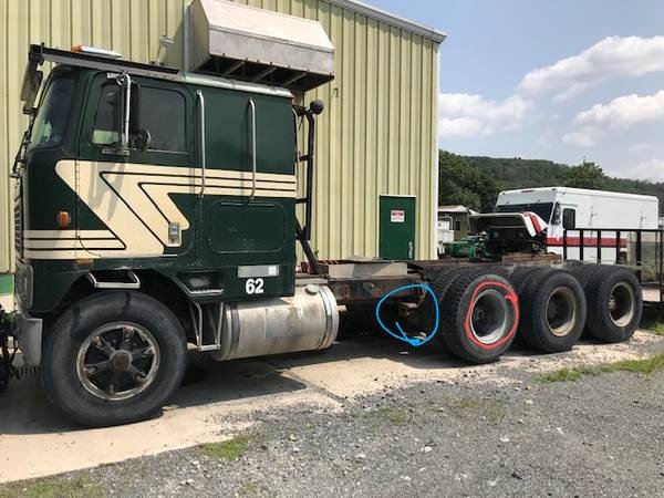 You can see the oil bath hub plug on the first rear axle, I never see any on road 3 powered axle trucks...