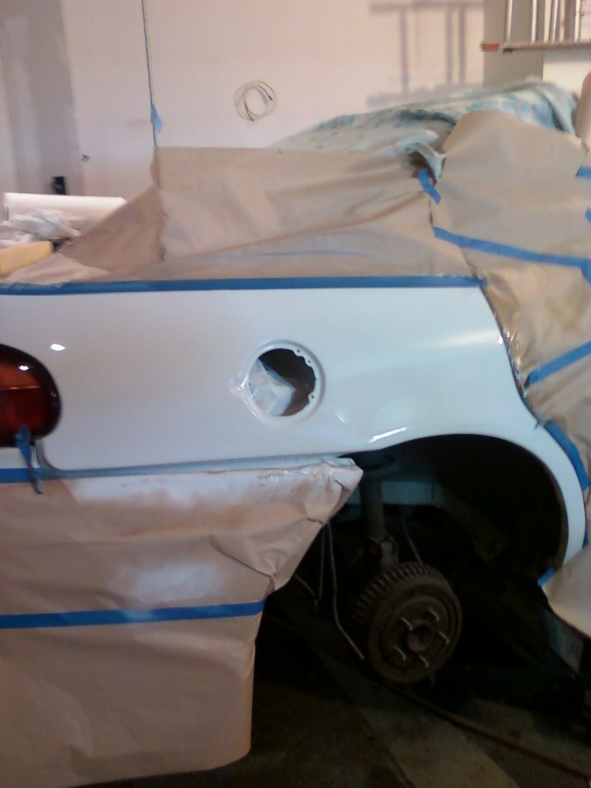 Since I had no interest in doing this, or any additional painting, I could not justify the cost of the materials I would have had to buy to do this little job, and only use very small amounts of the products. So, I primed, painted, and clear coated this repair, entirely with spray cans.
