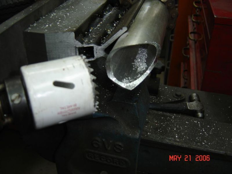 I usually dont like to buy cheap tools, but the other day I was in Tupelo looking at a small welding job when I saw the next building was a Harbor Frieght. I saw a holesaw /tubing notcher that looked pretty good. I ahd a job comming up soon and needed alot of pipe notched to make make a set of tables in a friend grean house as well as in my own green house. I tol my wife I thought about buying one but didnt want to waist the money on right now for a small job. I wante a Joint Jigger but the 180 dollars right now I couldnt justify. Well Chrismas morning I woke up and Amy was dragging me to the tree. She had gotten me the HF notcher. I tried it out with my hole saws and it does great. the first cut favored one side a bit si I added some 1/8 washers and it straightened it right out. Im about to finisht my green house and the tables Ill post a few pics this comming week. It makes a super nice joint to all you have to do is drag the rod and it makes a nice looking seam. Now I need to finsh my bed shaper and my row mulcher.