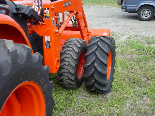 I am currently drafting a four-part article on tire selection, which will include explanations of tire treads, soil conditions, 4WD circumference ratios, footprint pressure calculations, rim and flange explanations, and the superiority of radial design for tractor tires. The culmination of the series in Part IV will document with pictures how I researched, specified and installed the highest quality R1W radial tires on my new L3430 for essentially the same cost as Kubota's R4 tires and rims--which should give me much better dry and wet soil traction, much more flotation, much bigger footprints, much less ground pressure and soil/lawn compaction, much stronger top and sidewall construction, far greater tire life, improved 4wd ratios, and a far more comfortable ride than is possible with the kind of cheap bias ply R1 and R4 tires put on compact tractors (sometimes on out-of-spec rims and often with out-spec-4WD ratios). This all will be posted during the last part of August. The tractor is not yet delivered; some final tread carving and other customizations are being worked on as I type.