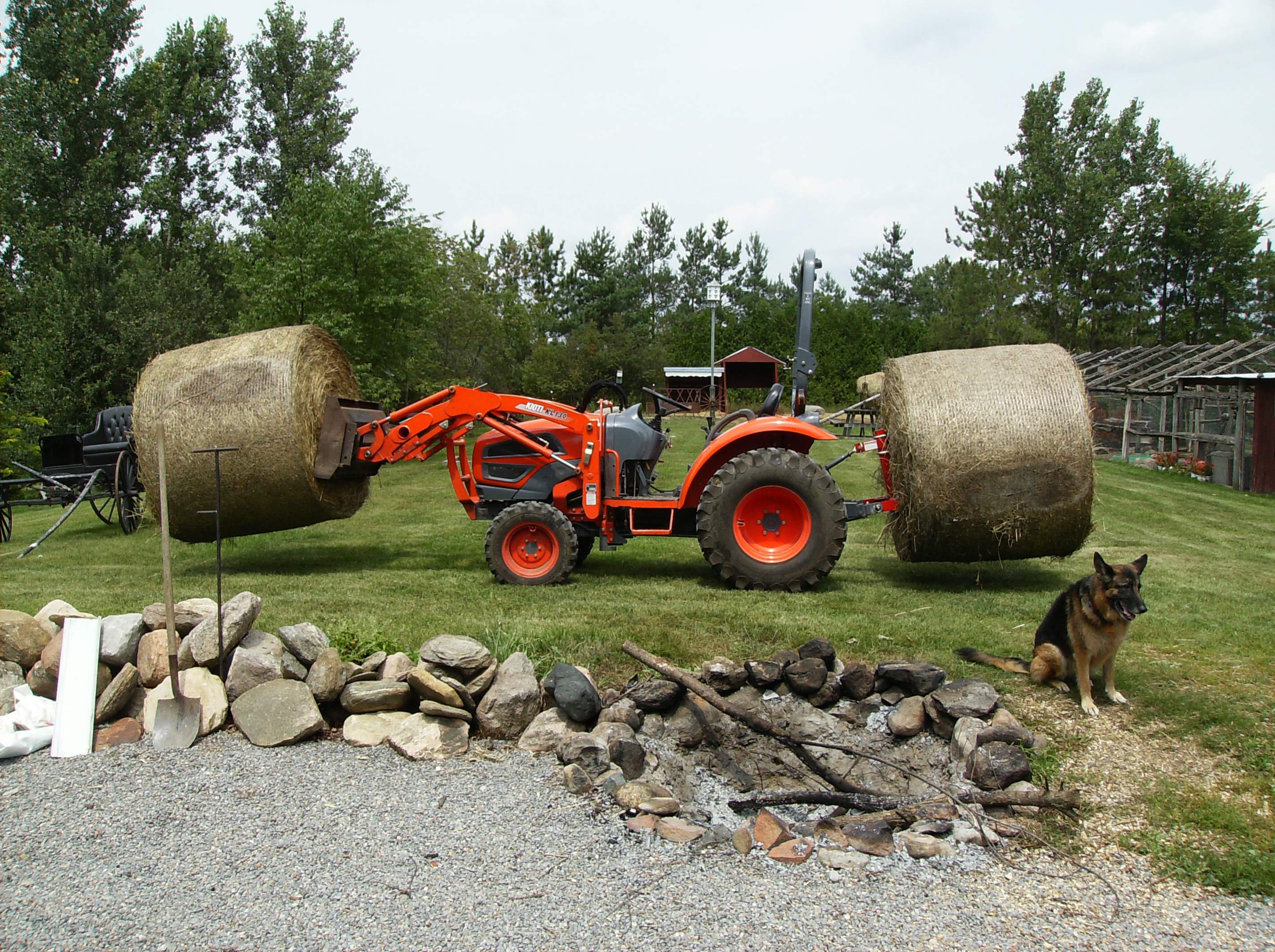 Our road is looking great with the boxblading and I have used the loader to grab wood and bring it to the woodsplitter. Mom and I split 4 cords of wood the other day and we looked at each othe and said