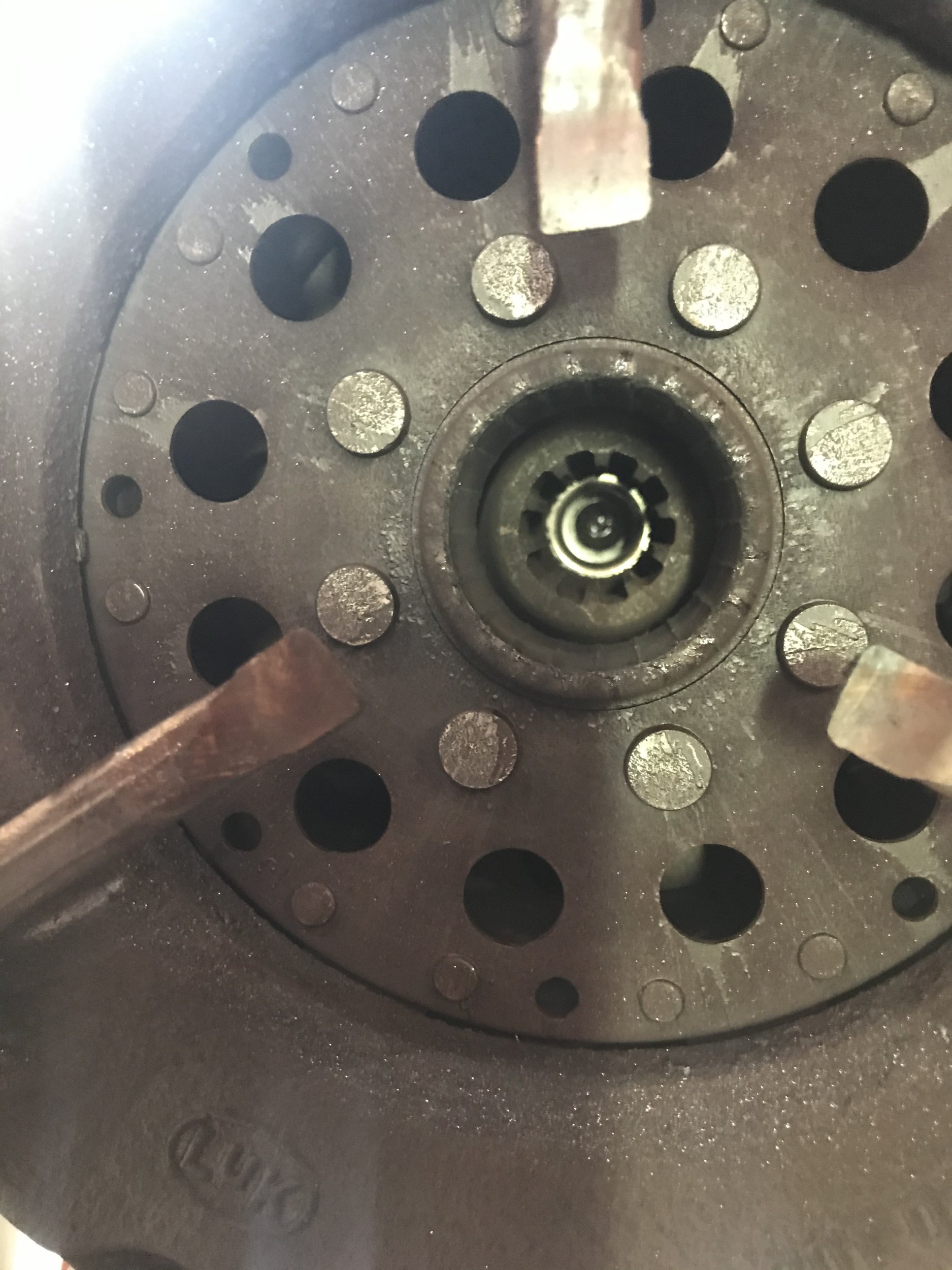 This tractor has 850hrs. on it, it has a two stage "belleville" style clutch. The PTO disc has very minimal wear (looks great), the main drive disc has "sheared" the spline teeth out of its center hub several times (true story). This last fail the clutch hub is fine but all the rivets sheard off clean!