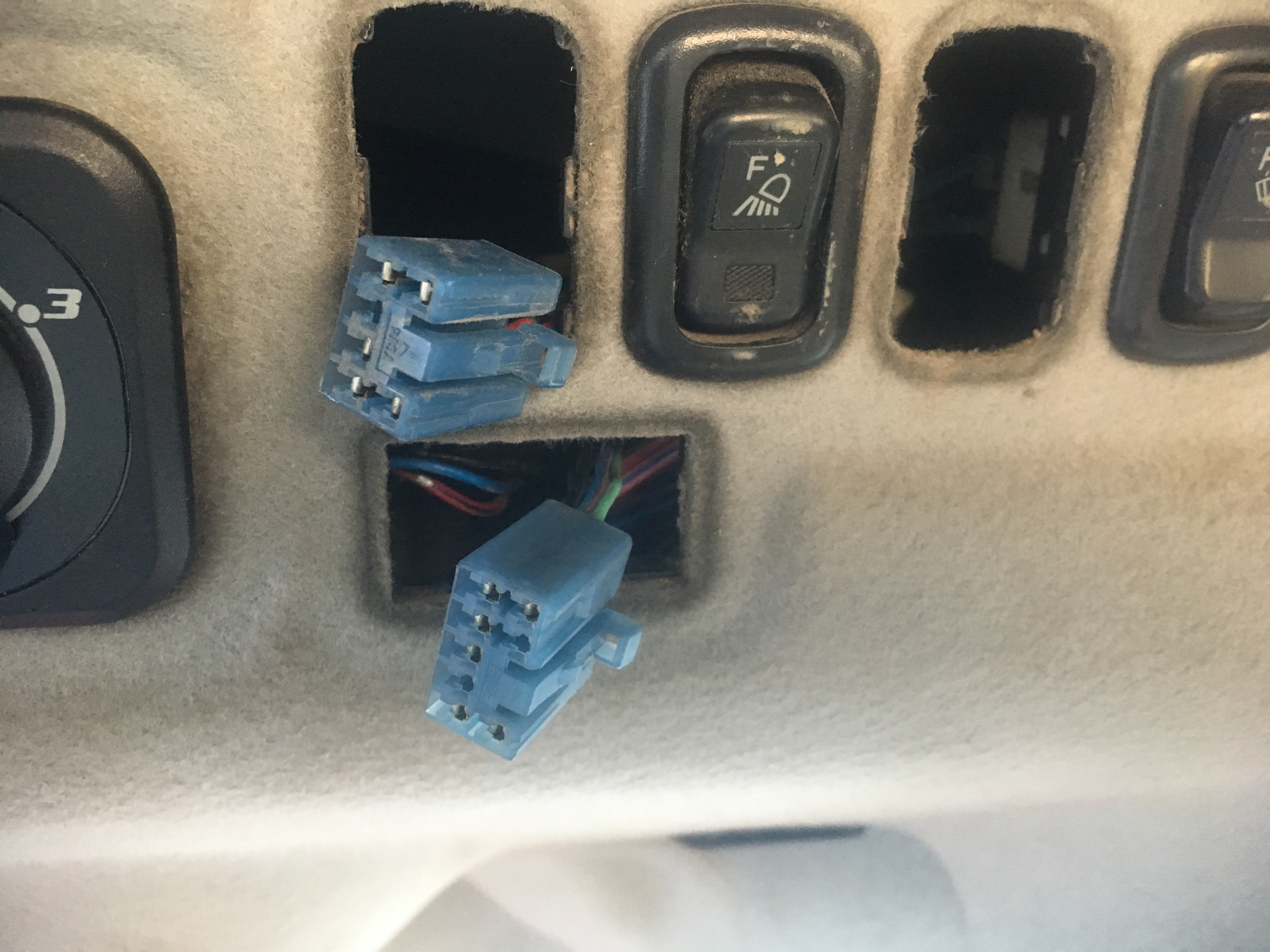 Thanks again guys for the info. I have located 3 more connectors up in the cab near the switches. The first one was white which I pictured in an earlier post. Two more are blue and the last and largest one is black. I also located the wires on the outside of the cab and taped to the hazard light wires.
