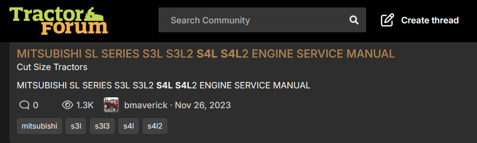 Picked up a used T293. Mostly to get the Cab and snowblower. 99% of the tractor service is covered in my T233/T273 service and parts manuals, because they are the same tractor with the exception of the 4-cylinder verses the 3-cylinder engine, and the wheel and tire sizes. I have the Mitsubishi service manual for the 3-cylinder engine, but am looking for the Mitsubishi S4L service manaul. Which I think is pretty much similar, but I'm not sure that there aren't little things which are different between the engines.