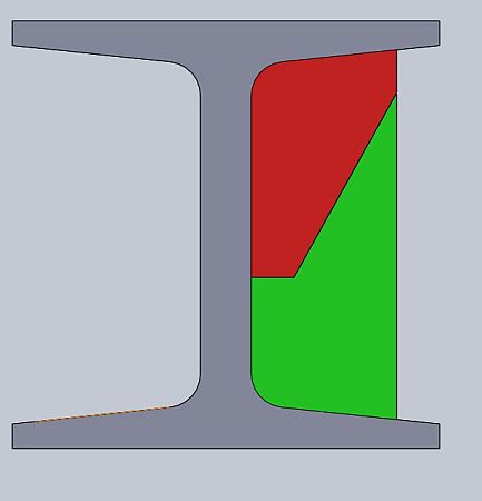 As for the steel, I already have some 100x50mm (4"x2") C-section steel channel that has been in the hedgerow for a number of years. I know an H or I section beam would be best, but I reckon 2 lengths of C section welded back to back will stand a good chance. It is to all intents free, as it's been there so long. I have modelled this beam in 3D CAD using Solidworks, and run some stress analysis tests on it based on a 10 tonne force, and deflection looks minimal.