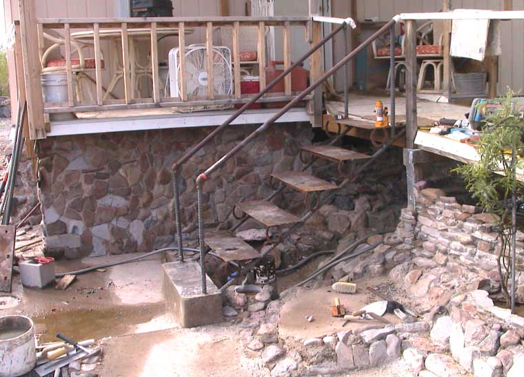 A side note: All rock work, stairs, deck and stucco was done by me, without help. Back hoe on tractor was used to set the stairs, those suckers were heavy.