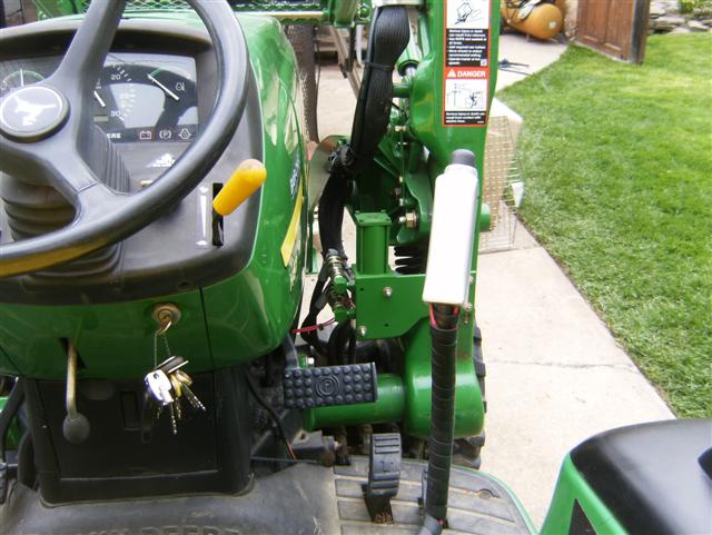 First of all, this post only proves that I'm a decent 'copy-cat'! All credit goes to "Willl" on this board for his patience, putting up with my countless PM's, and KennedyD, for the same on hydro knowledge! Guys, I can't thank you enough! I wanted to have the Hydro-Diverter stay with the loader arms when removed, so I guess I answered the question- "Can you drill into the posts?" Yes, you can! "Will the Towers fall off?" I don't know