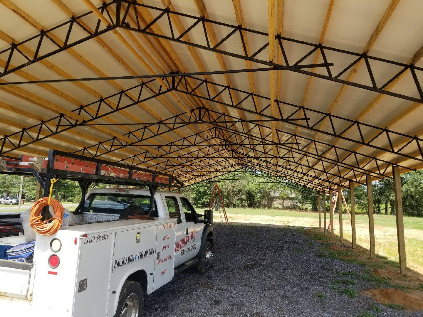 All the pole barns that I have seen put up in recent history have had more bracing than that, they have all had bracing going up from the uprights to the header on every post even though most of them had siding put up the same day as the poles went up.Not knowing the kind of winds you get but I'm kind of in Eddie's camp on the need or lack there of, for bracing. Surely can't hurt though if you were to diagonal brace the four sections on the ends if it is going to go unfinished for an extended amount of time.