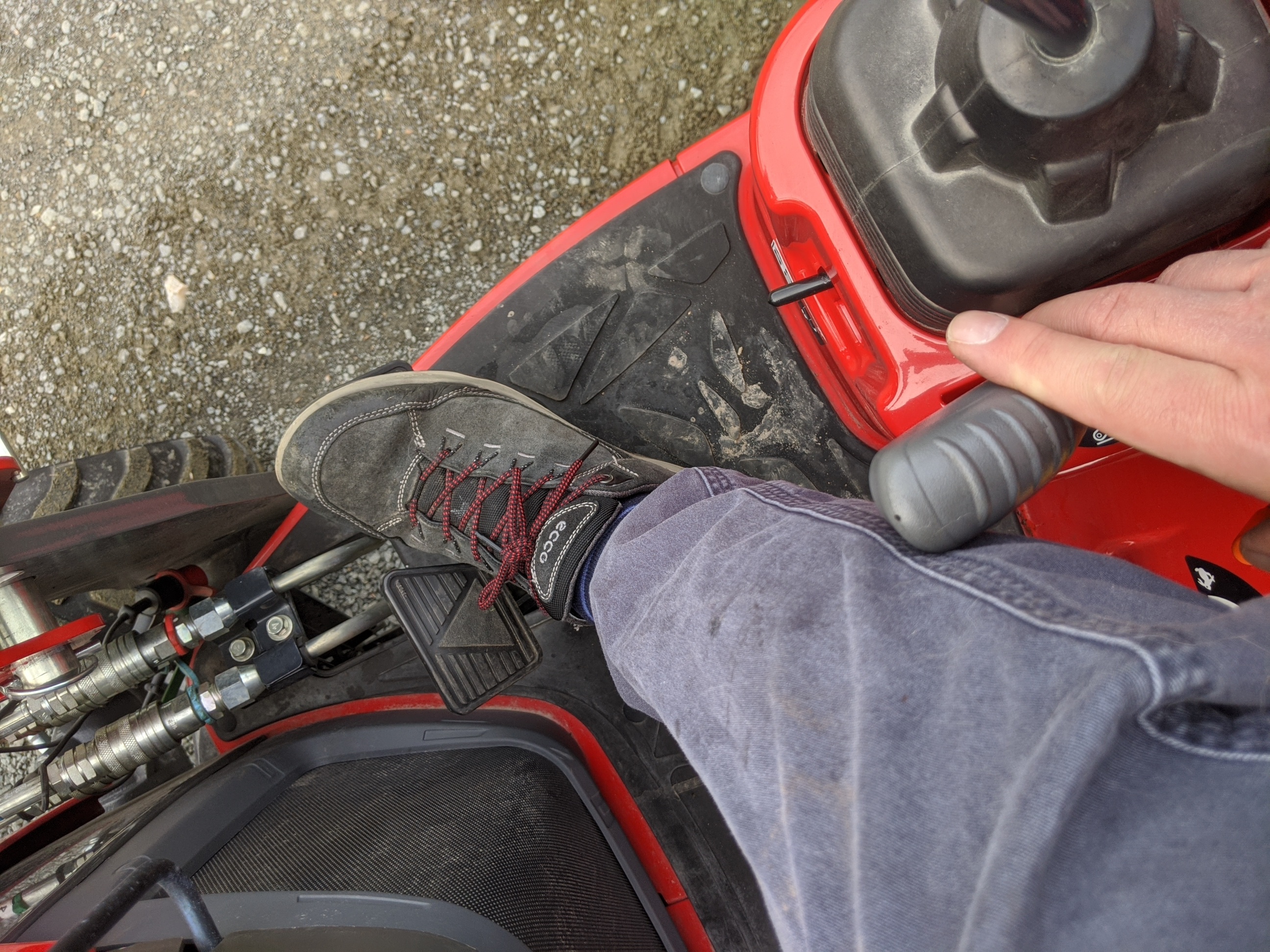 Put the blade on to smooth out some potholes in the drive, immediately noticed that with the rear blade down, going backwards to smooth using the curved side of the blade, my leg hits the lever when trying to put my foot on the reverse pedal (see pic). Thoughts?