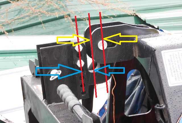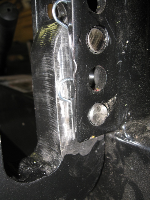 1. Drill another hole in the QH's top hook, it looks like I could get one in below the current lower hole and the same distance apart as the 2 existing holes. The bottom of the hook would still be below the pin but the pin would hit on the vertical part of the hook.