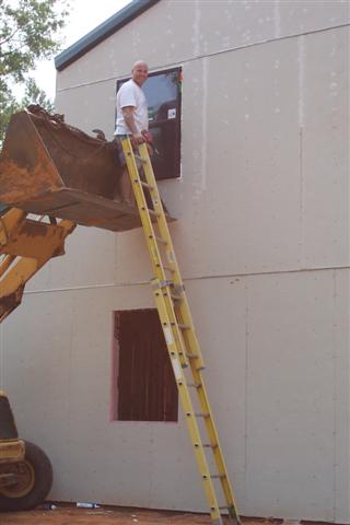 I do not like using the bucket as a work platform but it is so incredibly useful that I can't resist. I take a lot of precautions, warn the kids never to do like daddy does (which is hypocritical and probably useless but I at least explain to them why it can be dangerous so that they understand the risk involved). But I built that shed with just me, my 17 year old son and my wife. (My B-I-L helped with the roof...or I helped him anyway). I literally could not have built it without using the tractor. Its a calculated risk and I don't recommend anyone else do it....but man it was a big help!