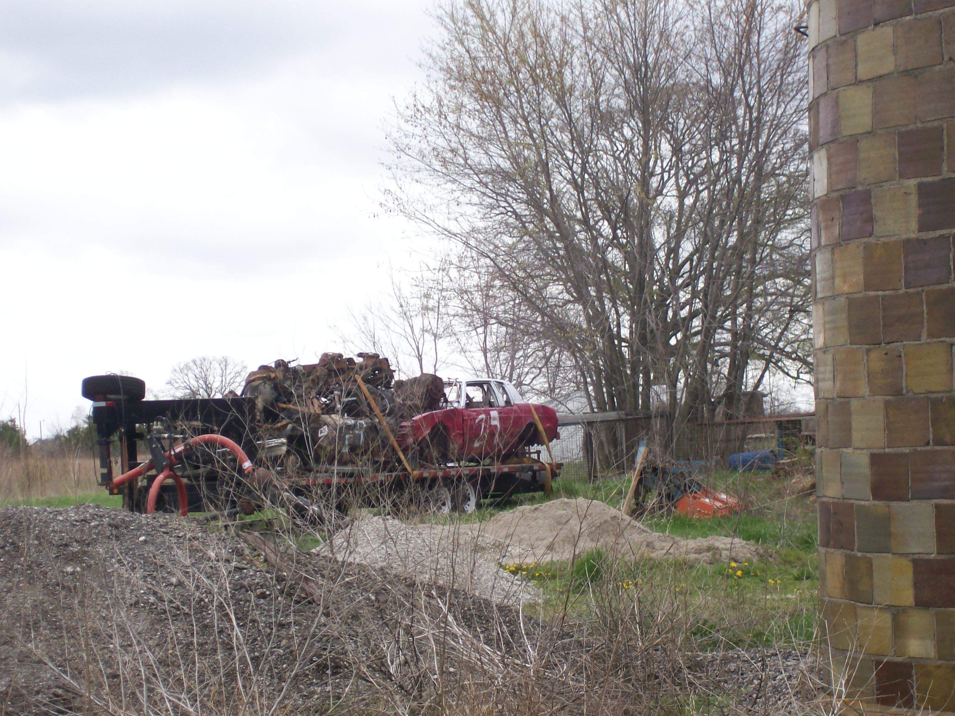 BTW: 3 MEN could have picked that motor up by hand and tossed it into the pickup. Next time use the tractor to pick the whole mess up, set it into the truck bed, and then use your Jaws of Life to cut the car out away from the engine.